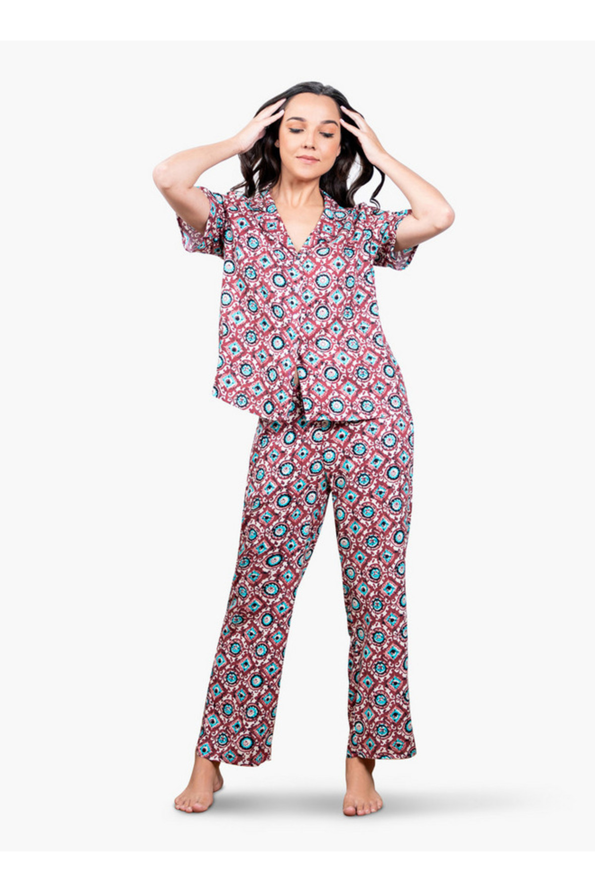 ميزات طقم بيجامة مطبوع من Aadaraya