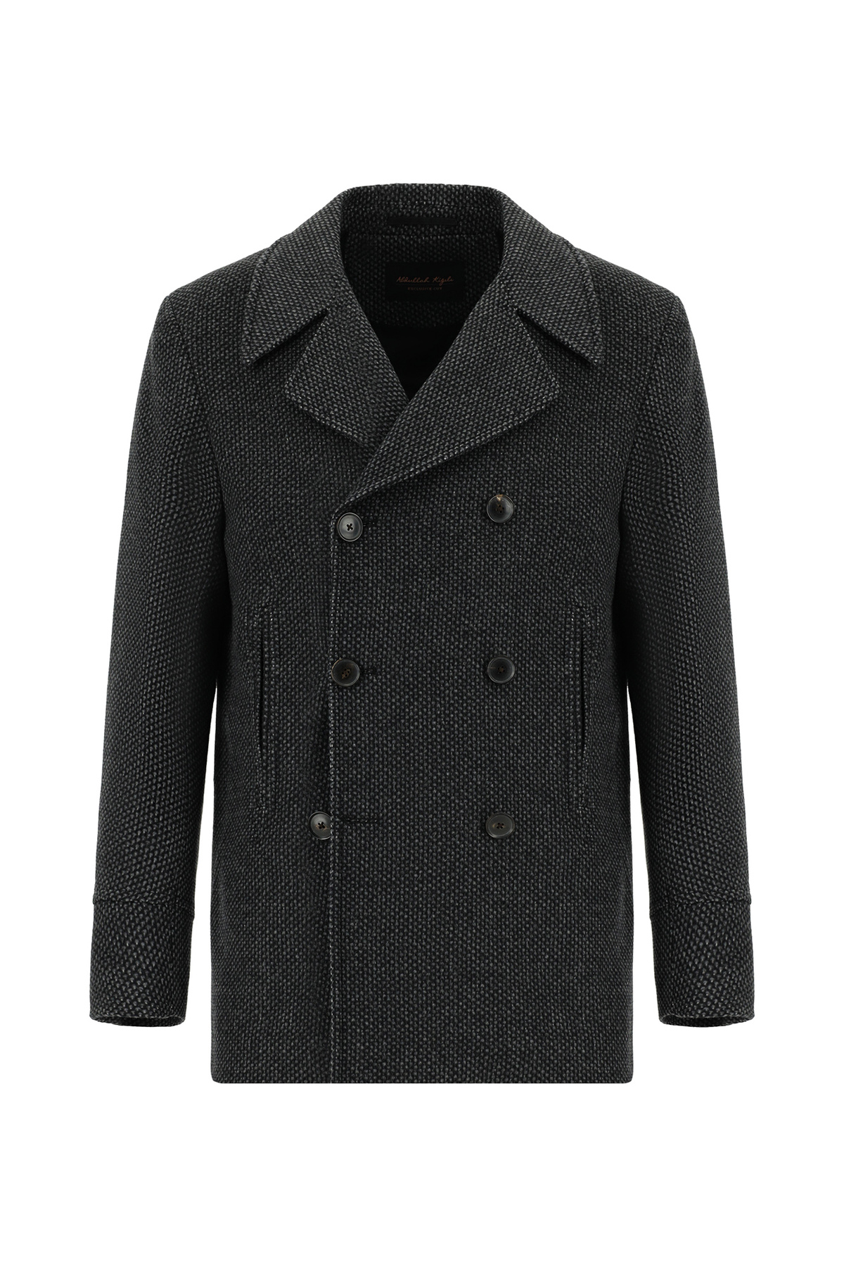 ميزات معطف كشمير صوف منقوش مزدوج الصدر من Abdullah Kiğılı
