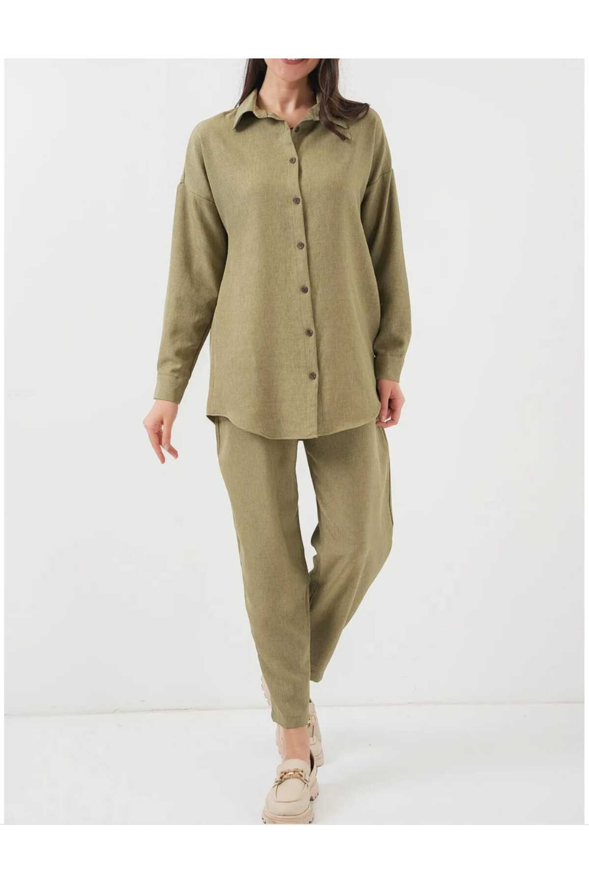 ميزات طقم مزدوج من الكتان العادي # 6699 من ABOUT US