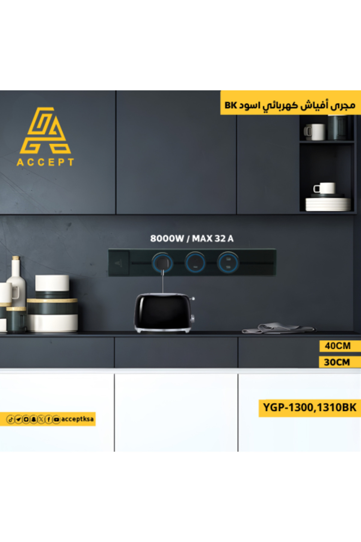 ACCEPT مجرى مسار كهربائي ( لطش ) بتصميم فريد مقاس 40 سم لون اسود