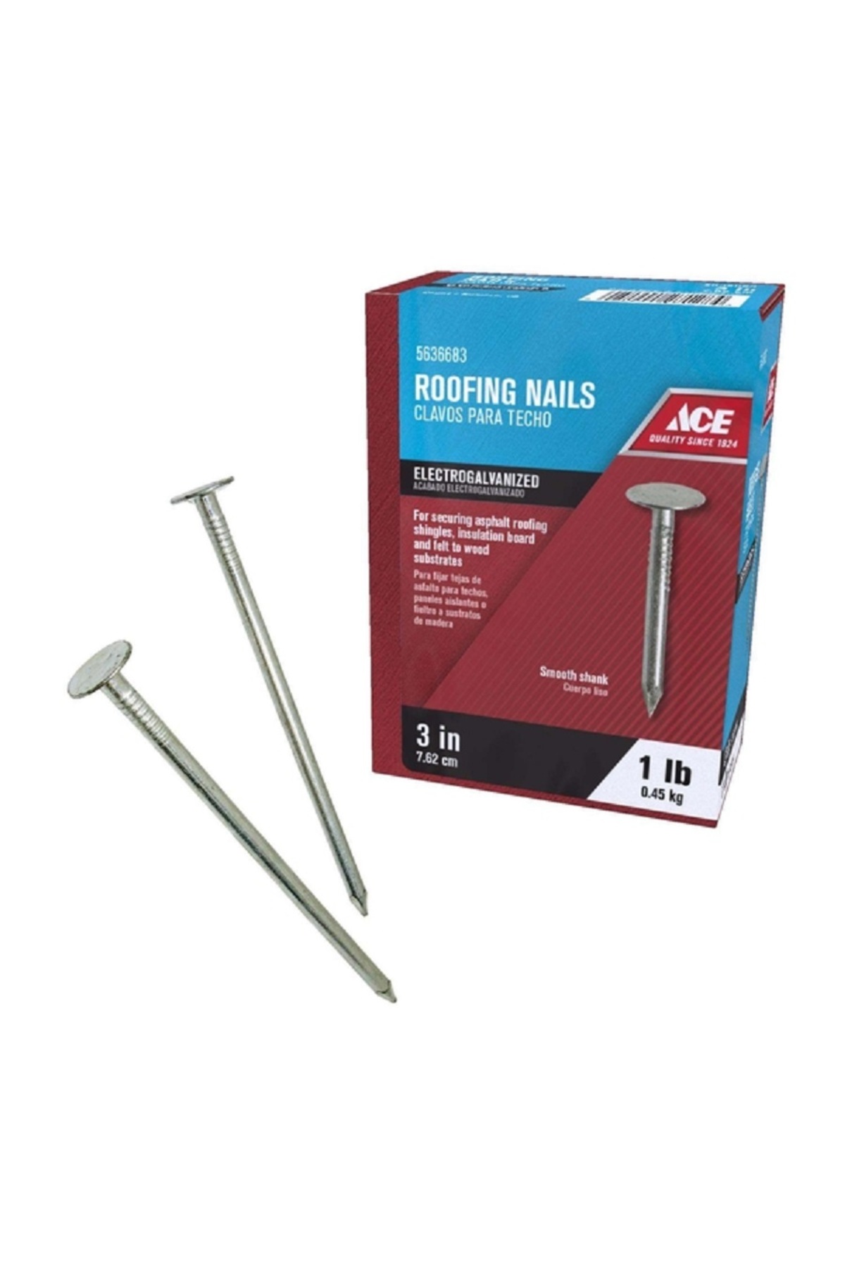 ACE مسامير سقف مسطحة مجلفنة كهربائيًا فضية مقاس 3 بوصات
