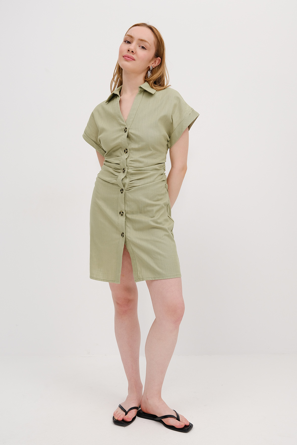 ميزات فستان بأزرار من مزيج الكتان E17463 من Addax