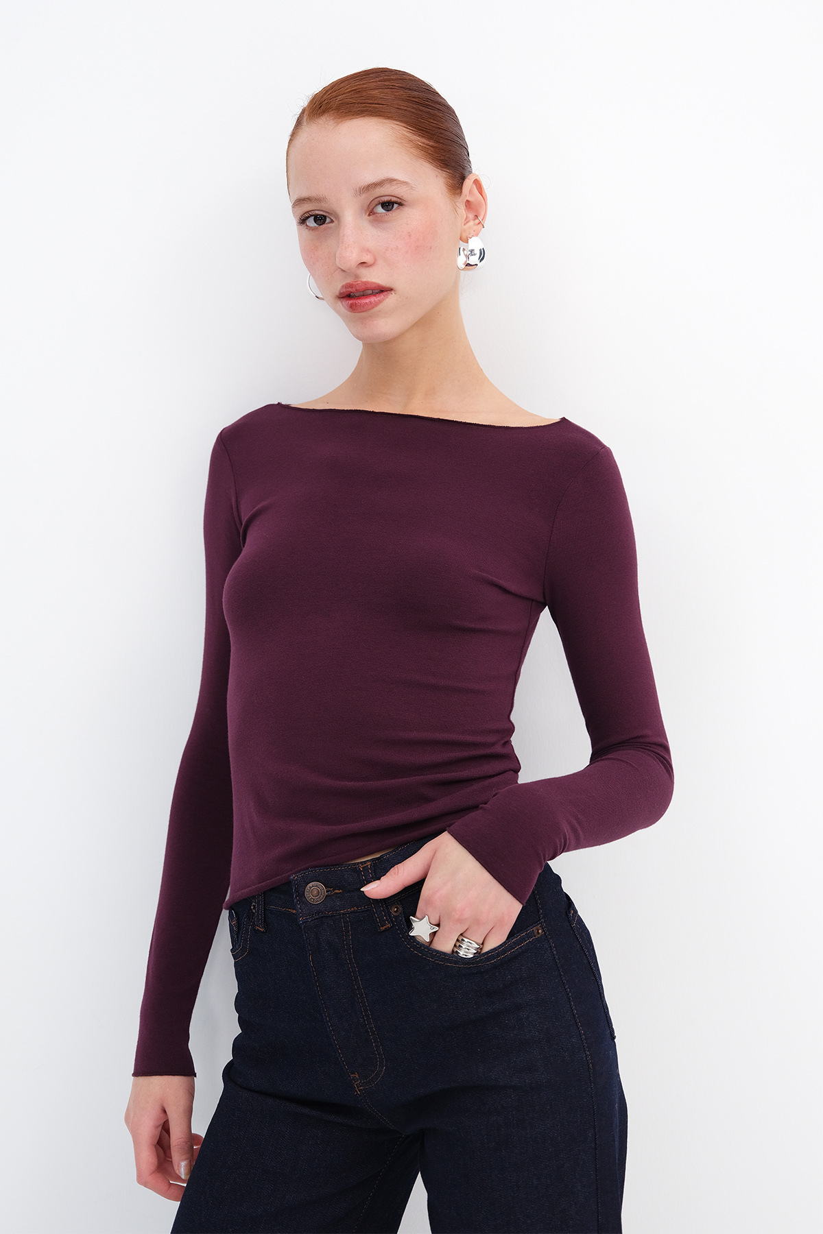ميزات بلوزة أساسية بأكمام طويلة B1846 من Addax