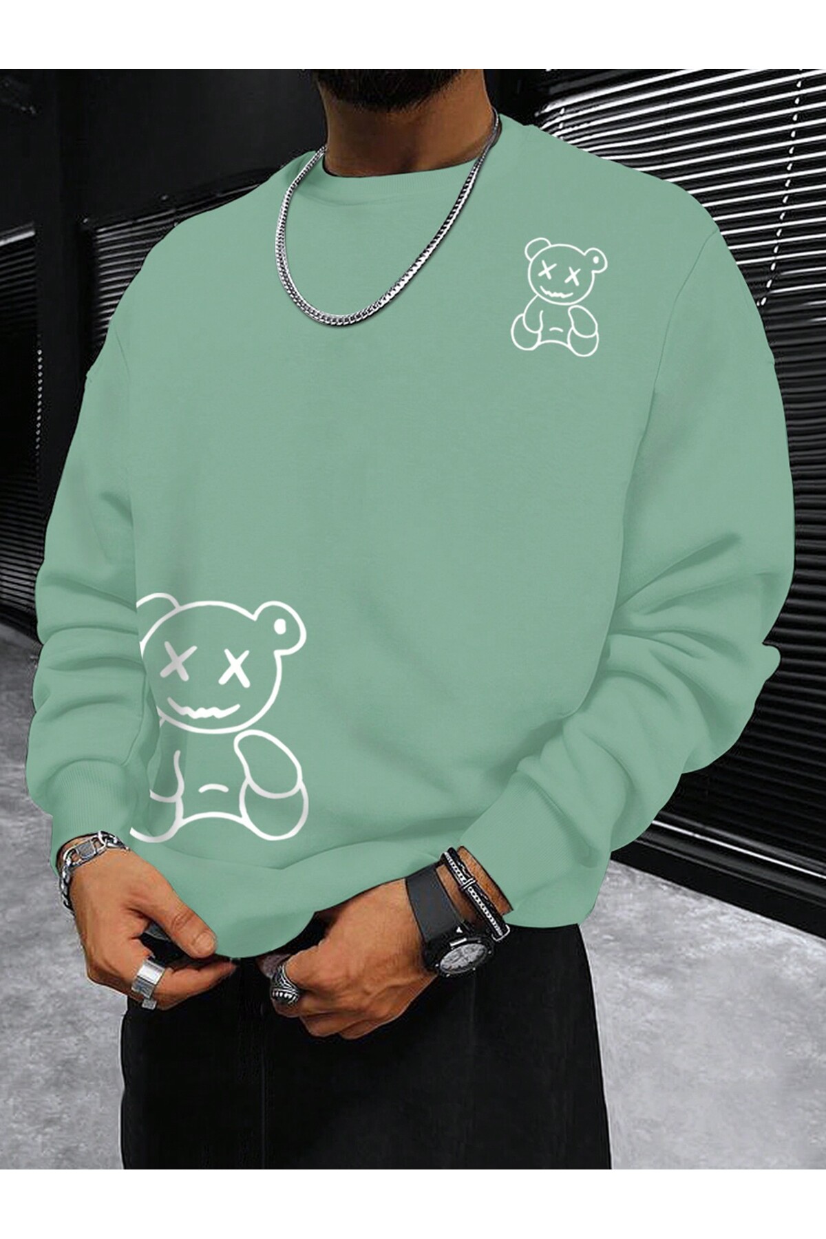 Adrift سويت شيرت مانفينيتي هايبي مواد بطبعة دب باللون الأخضر