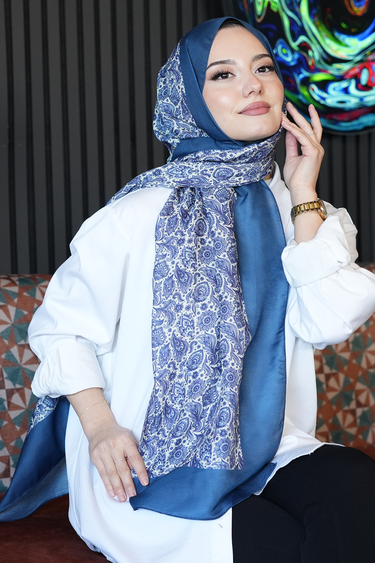 ميزات شال قطني ناعم باللون الفيروزي بنقشة الزهور من AFVENTE