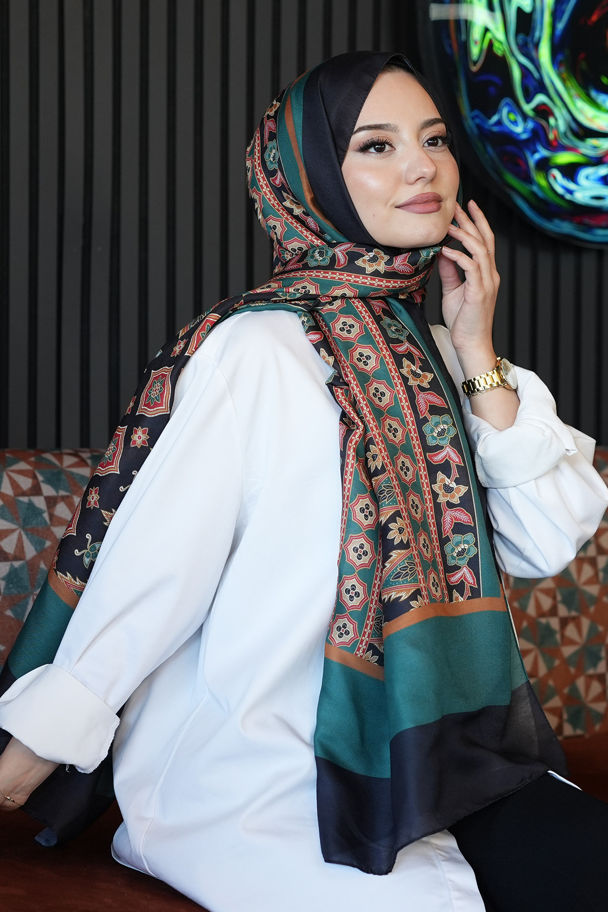 ميزات شال قطني ناعم بنمط الزهور باللون الأخضر من AFVENTE