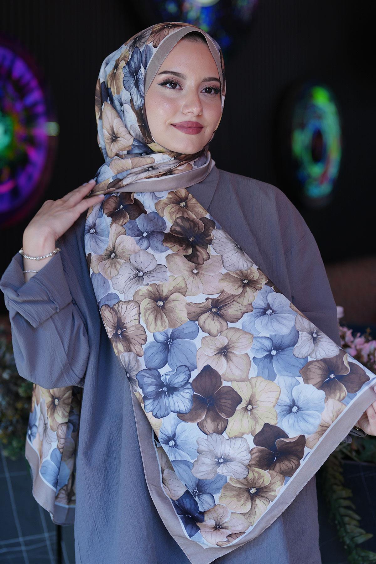 ميزات شال من القطن الناعم بنمط زهرة الأورتانا من AFVENTE