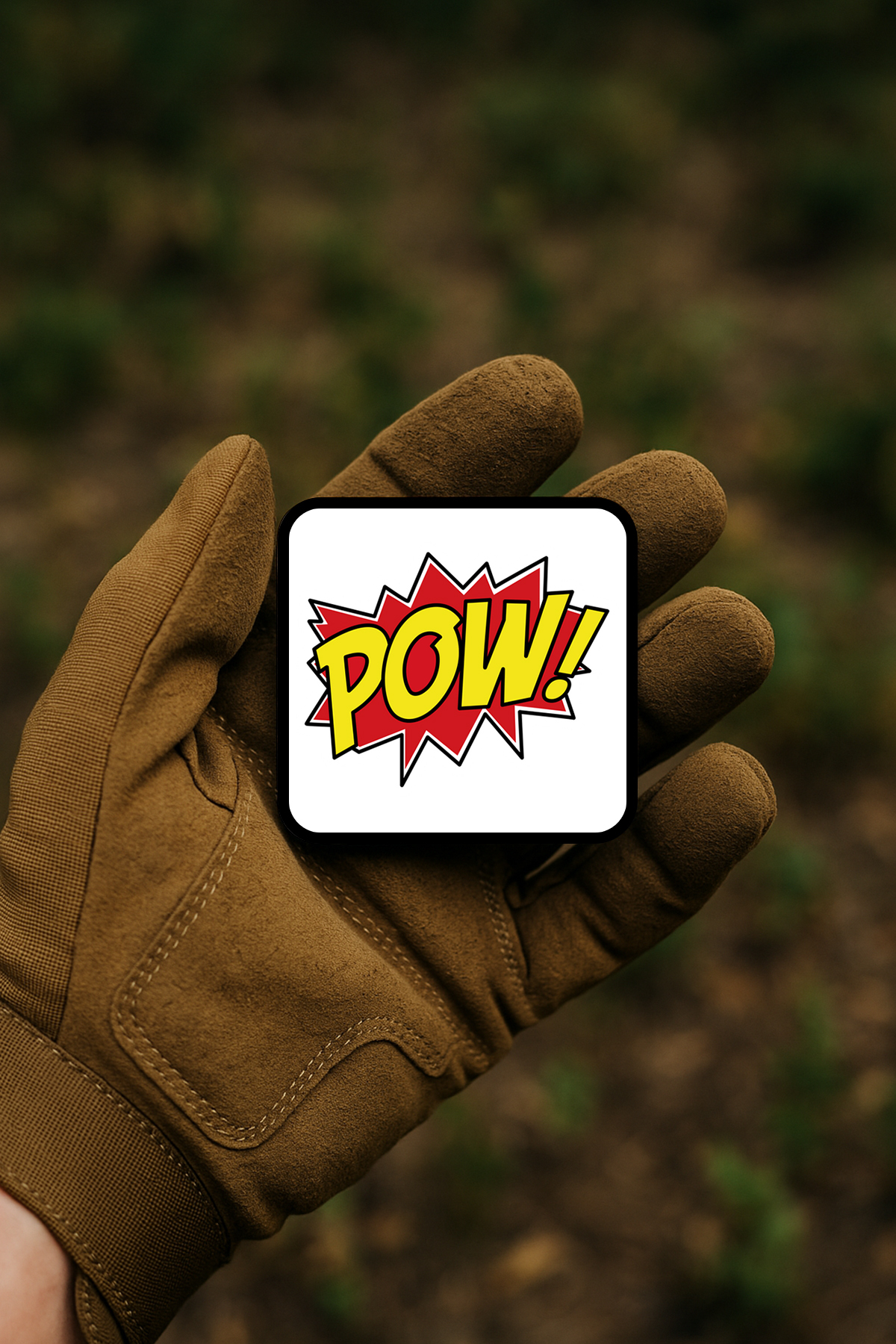 ميزات ملصق/شريط/شعار بتأثير انفجار على طراز القصص المصورة بعبارة 'POW!' من AHWALL