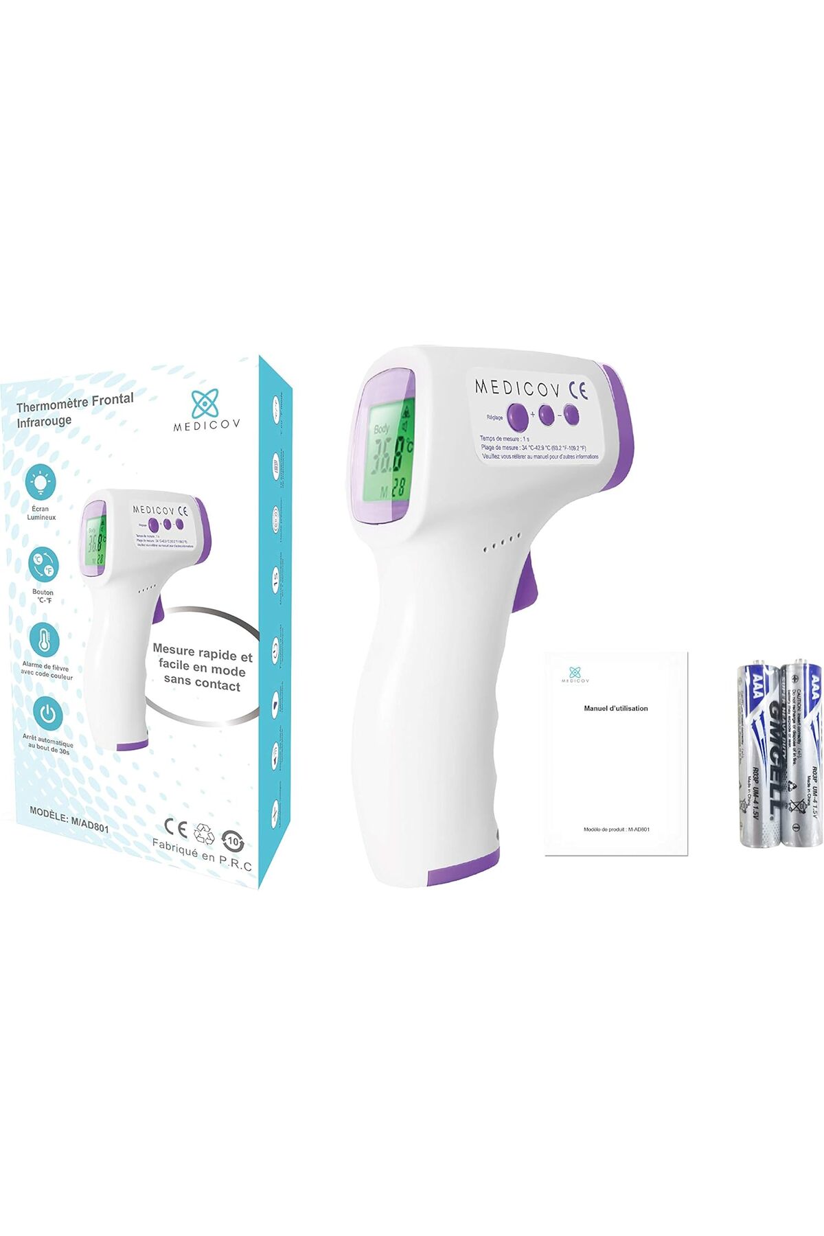 ميزات مقياس حرارة الجبهة بالأشعة تحت الحمراء - موديل Ad801 من AIQUE