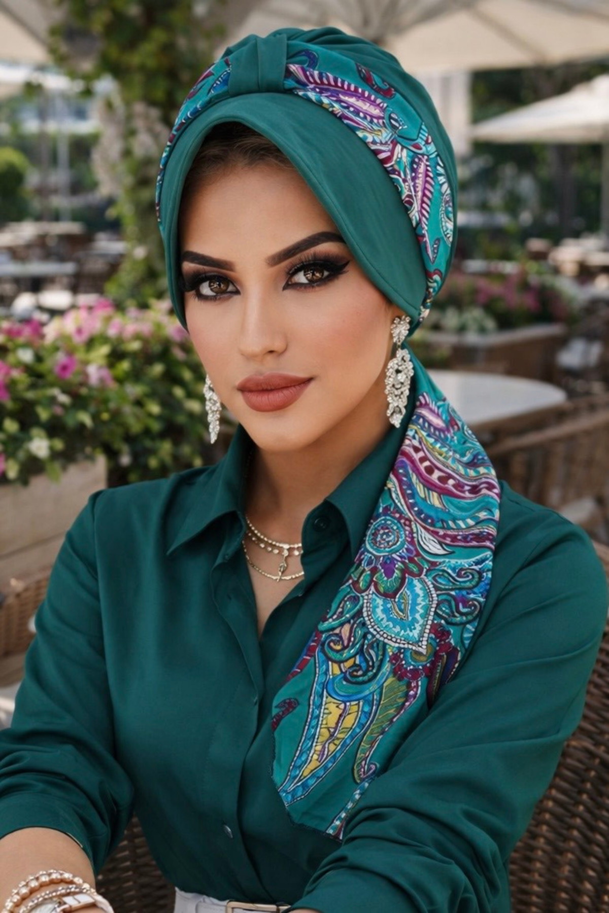 ميزات الزمرد العرقية منقوشة قبعة بونيه من Aişe tesettür