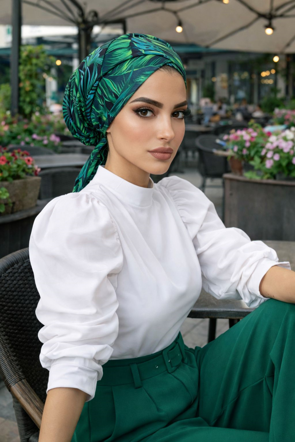 ميزات قبعة متقاطعة بنمط أوراق خضراء من Aişe tesettür