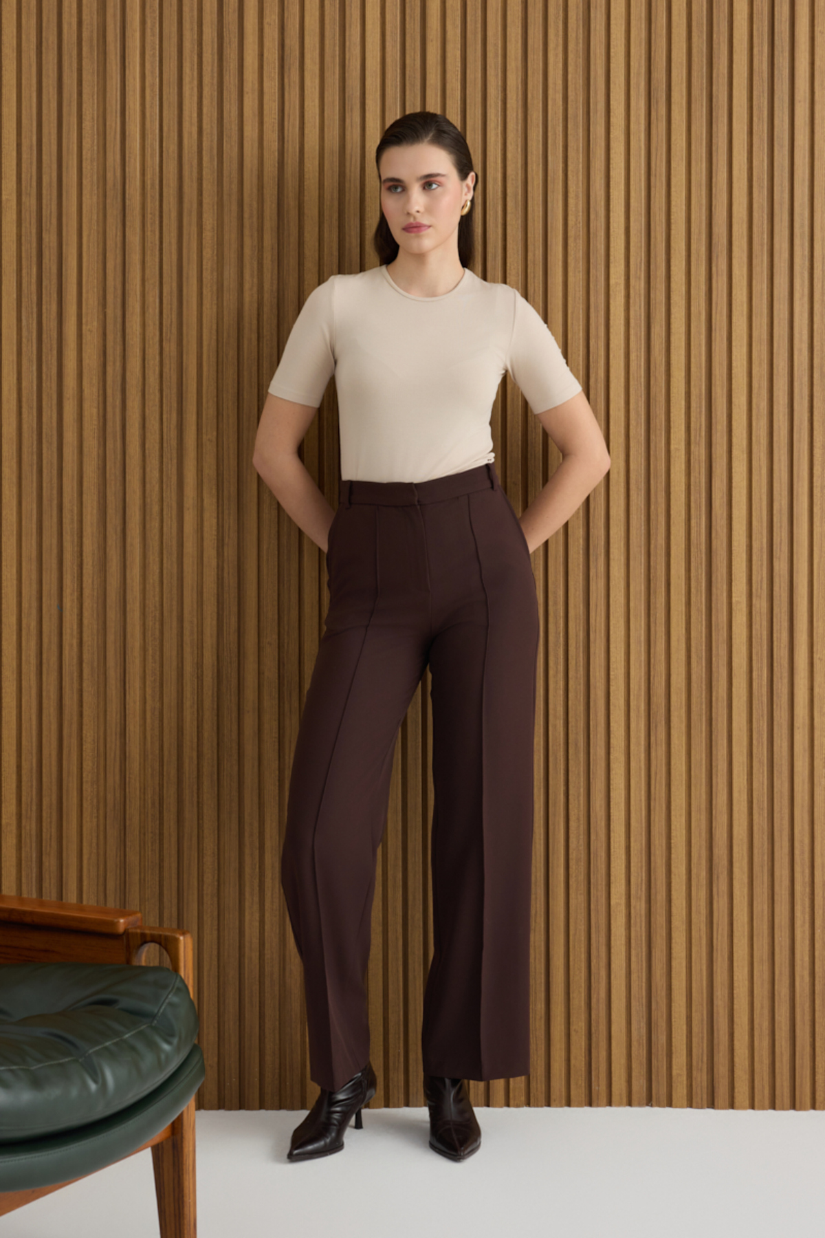 ميزات بنطلون بني منسوج من Aker