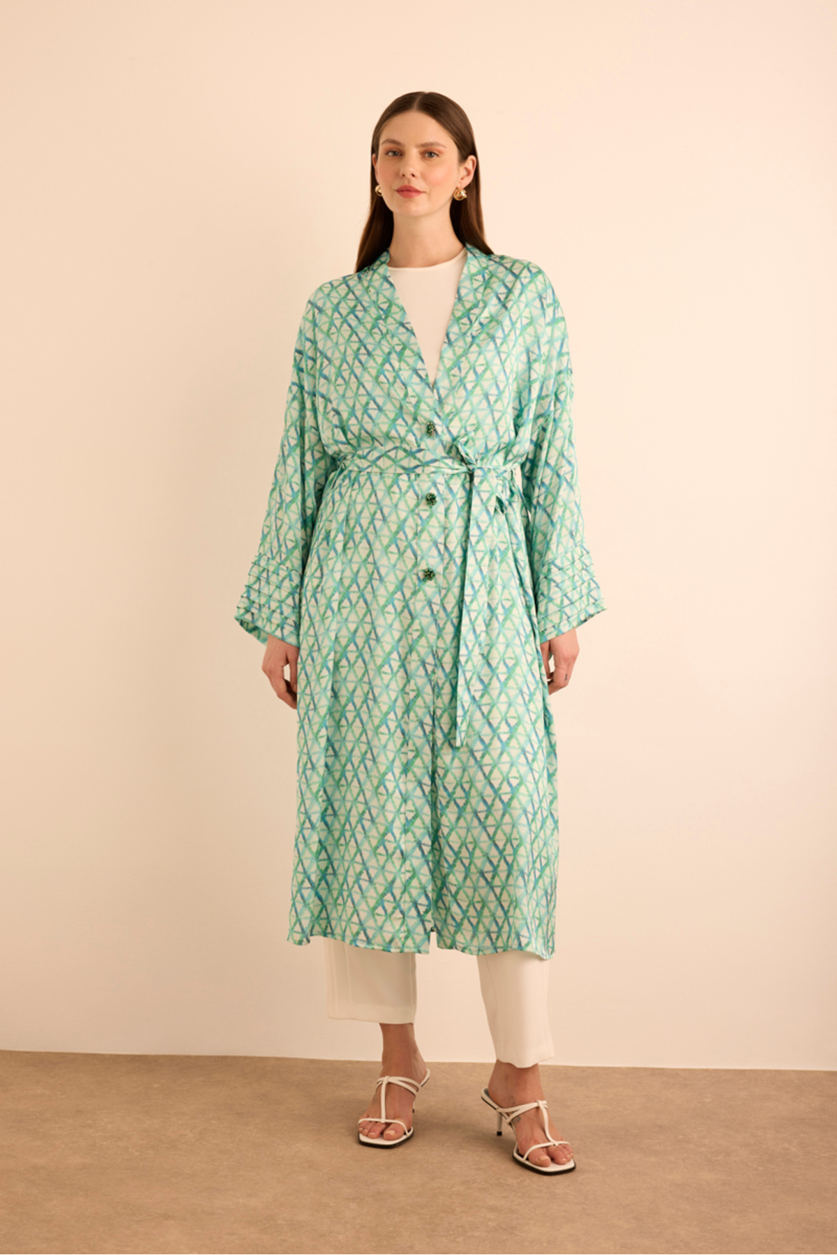 ميزات كيمونو منقوش هندسي بأكمام مخططة من Aker