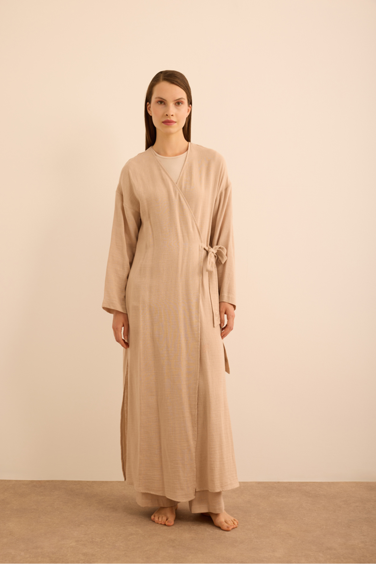 ميزات فستان من القطن فيسكون مع ربطة جانبية من Aker