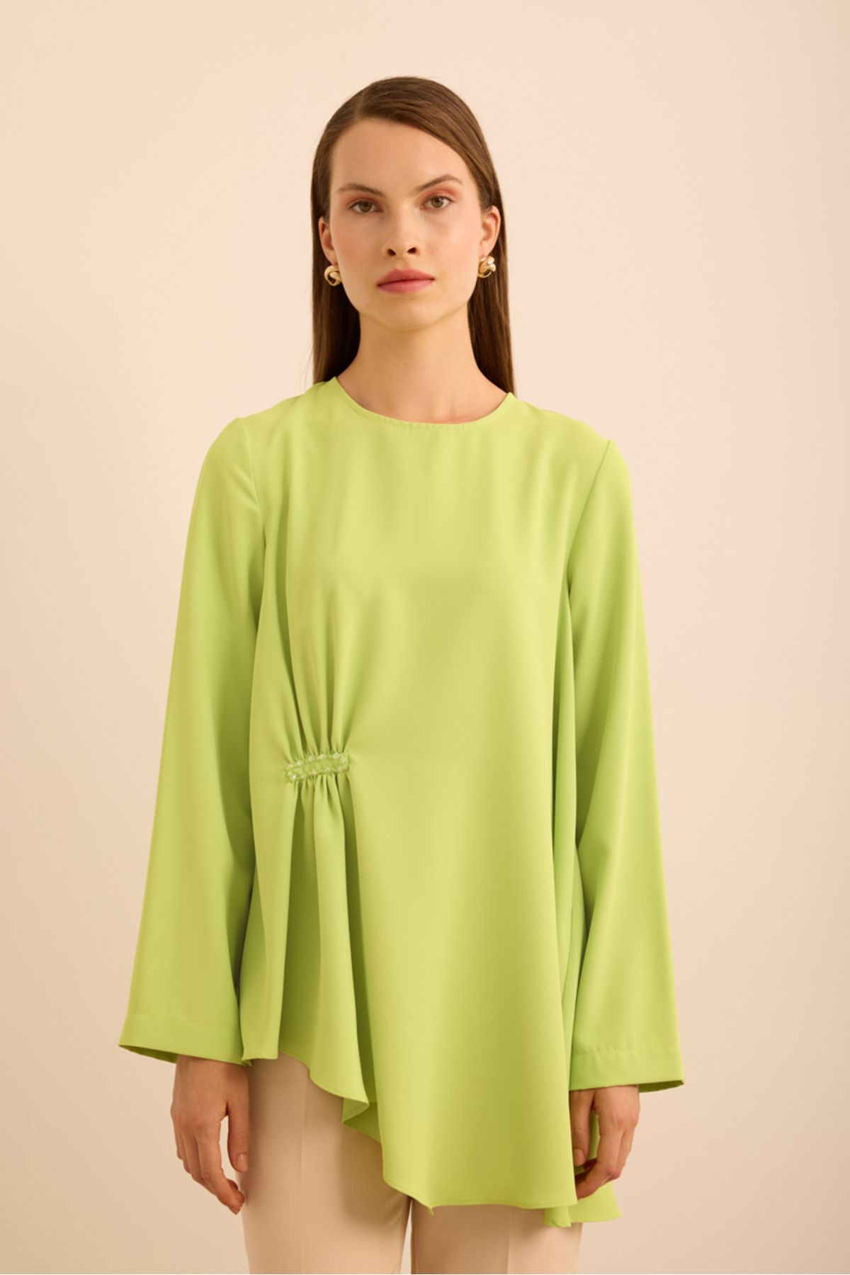 ميزات بلوزة منسوجة مع بطارية جانبية وتفاصيل مطرزة من Aker