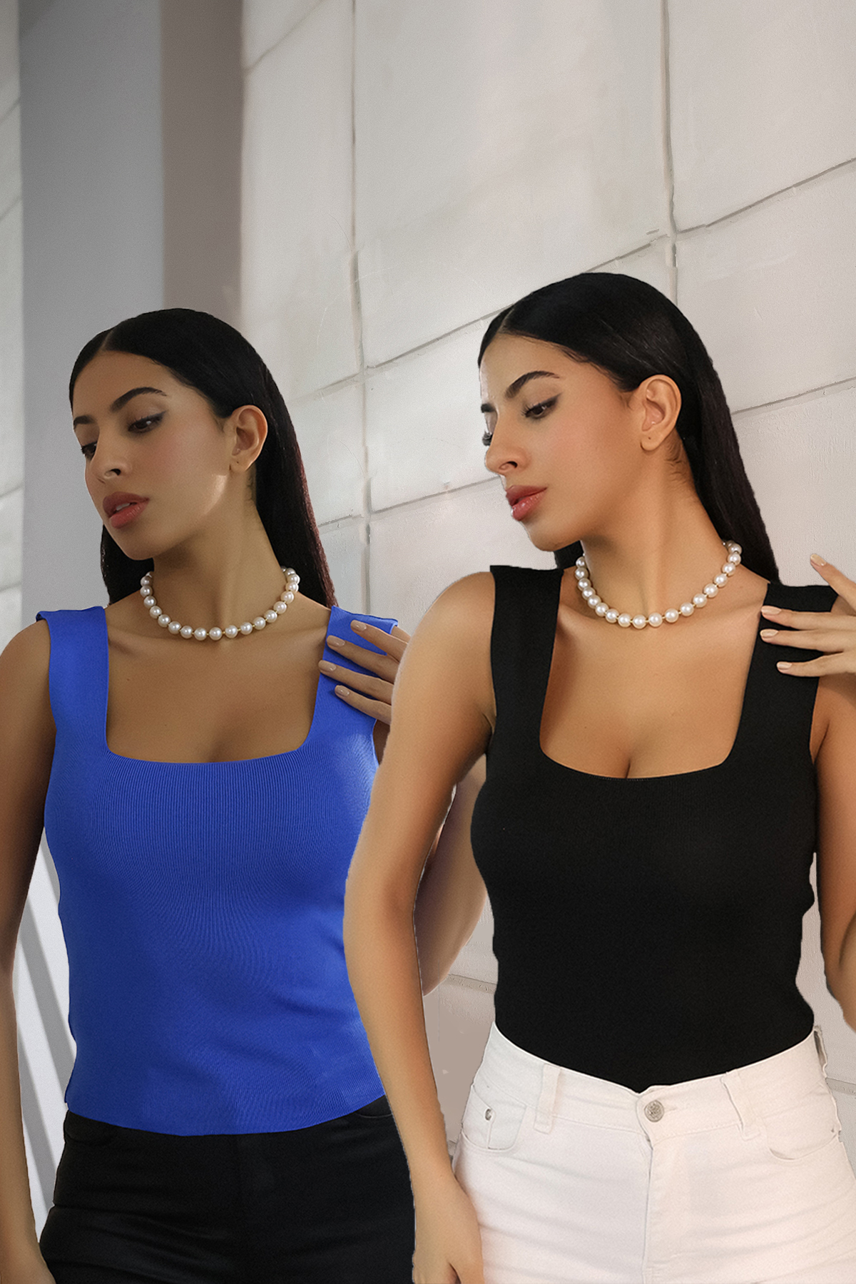 ميزات قميص داخلي صيفي أساسي ذو رقبة على شكل حرف U وأشرطة سميكة من ALCHON
