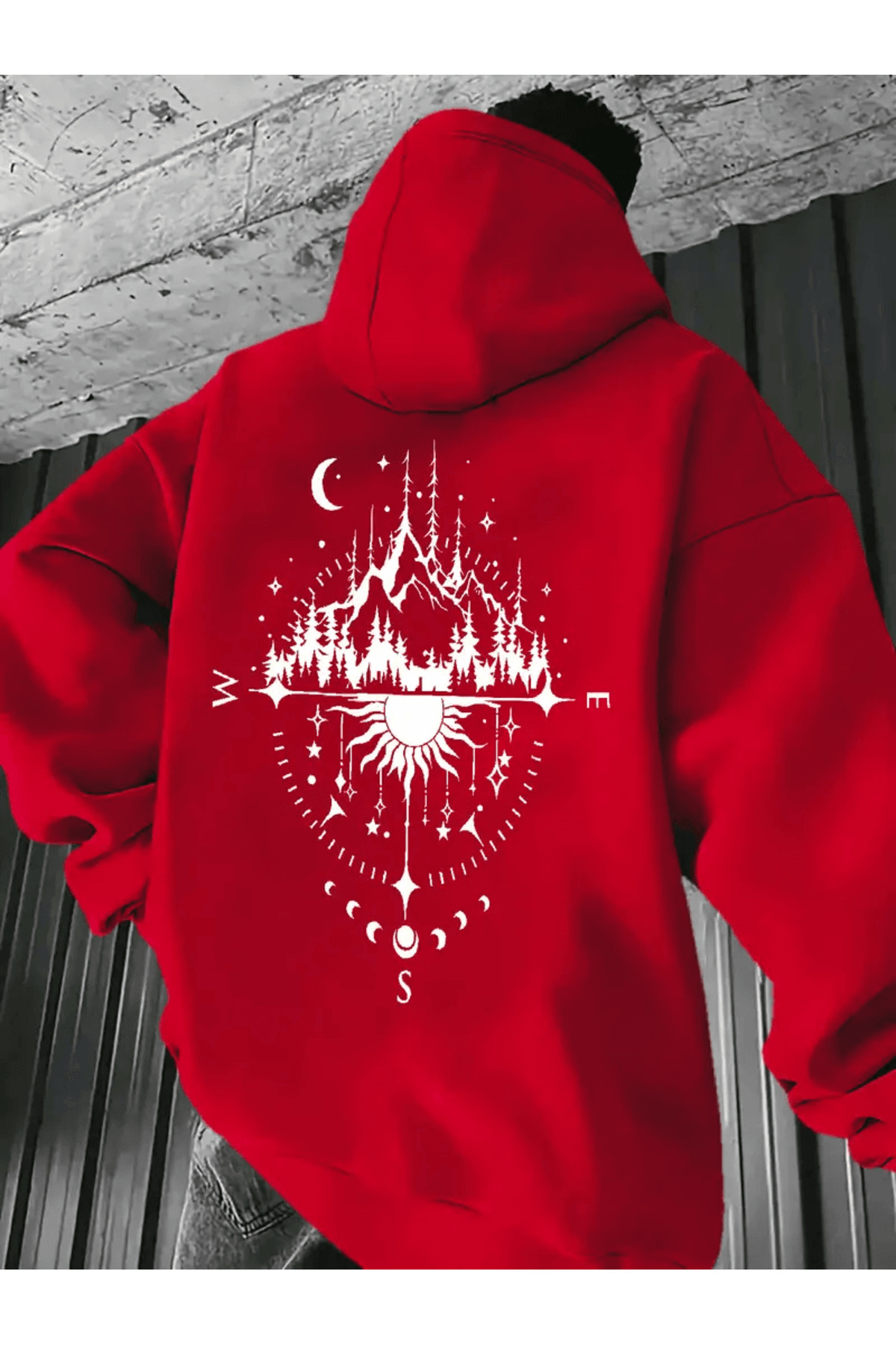 ميزات هودي رجالي منقوش بنمط البوصلة الكونية قصة فضفاضة من ALEYZA MODA