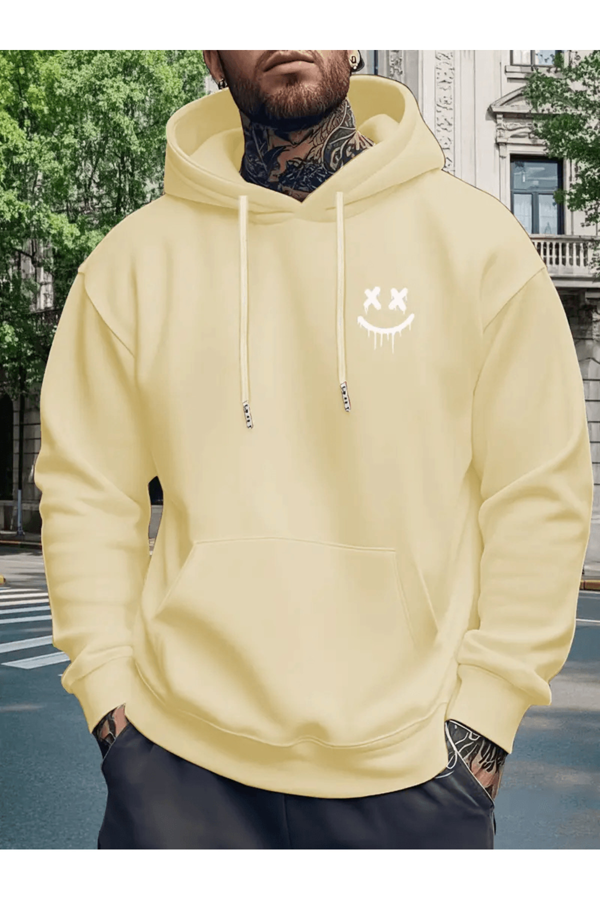 ميزات هوديي للرجال بنمط الوجه المبتسم الغوطي قصة فضفاضة من ALEYZA MODA