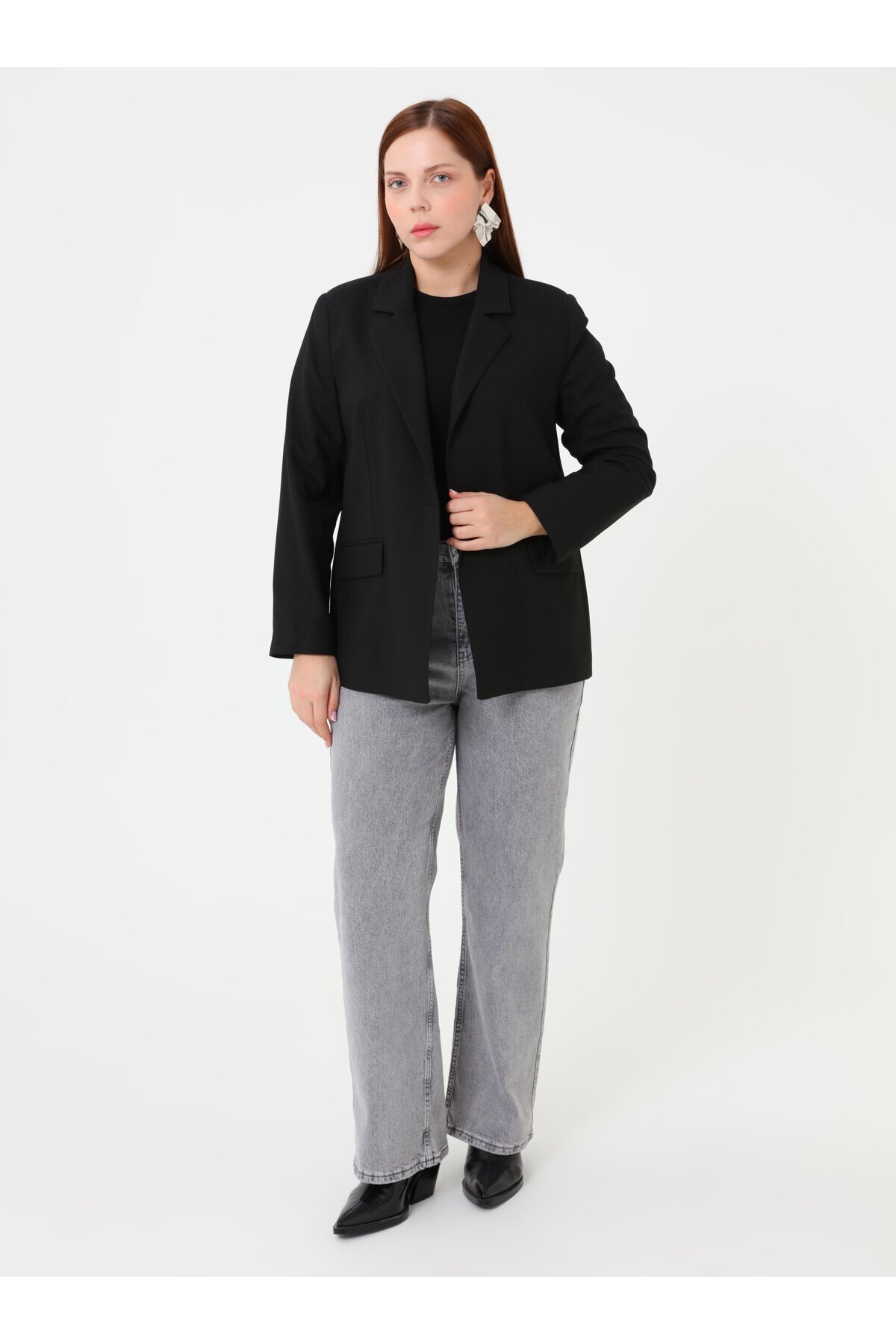ميزات بنطلون جينز أساسي مقاس كبير - رمادي - من ALİA