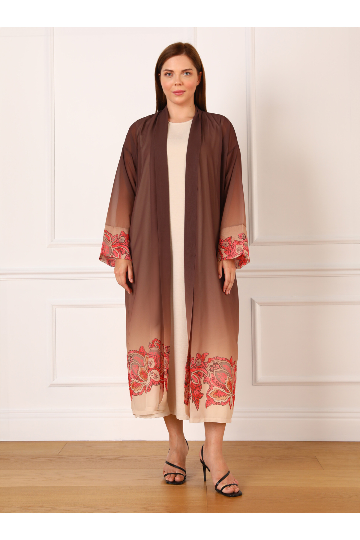 Alia طقم شيفون مقاس كبير - نمط متدرج، بني، أليا