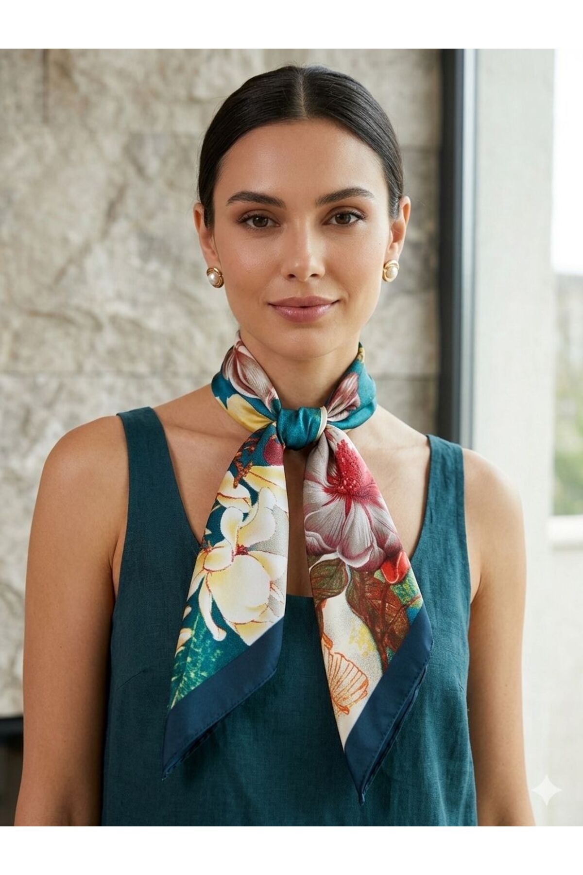 alinastore وشاح مسطح خاص منقوش (70x70)