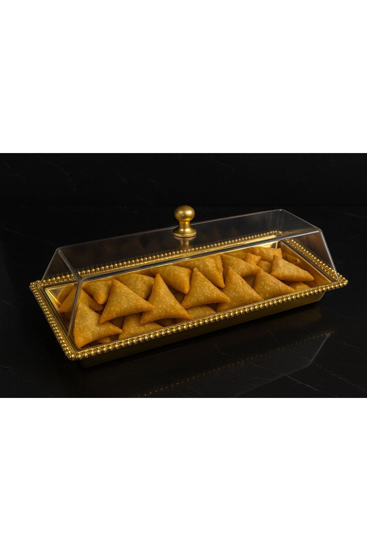 ميزات صحن فطائر مستطيل ذهبي غطاء اكرلك من ALMASA