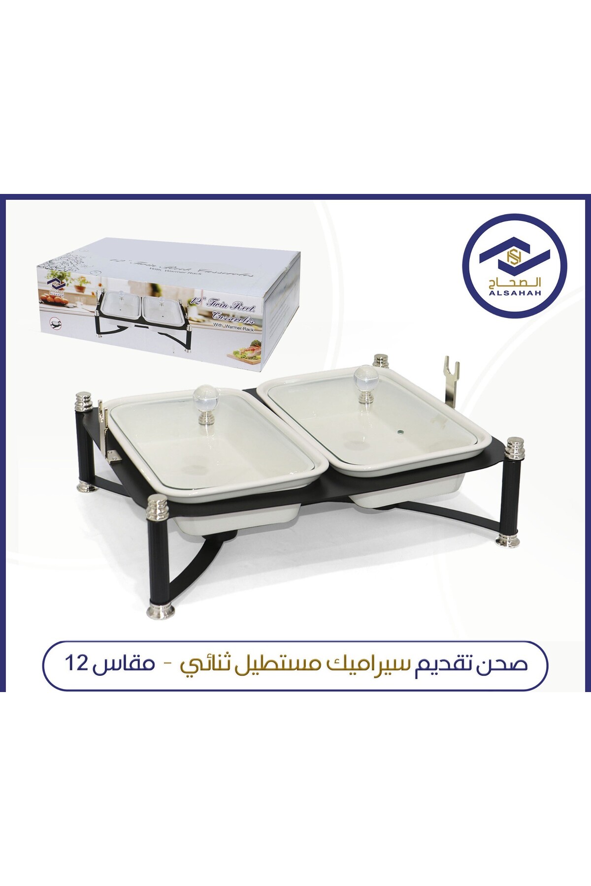 ALSAHA صحن تقديم سيراميك مستطيل ثنائي - مقاس 12