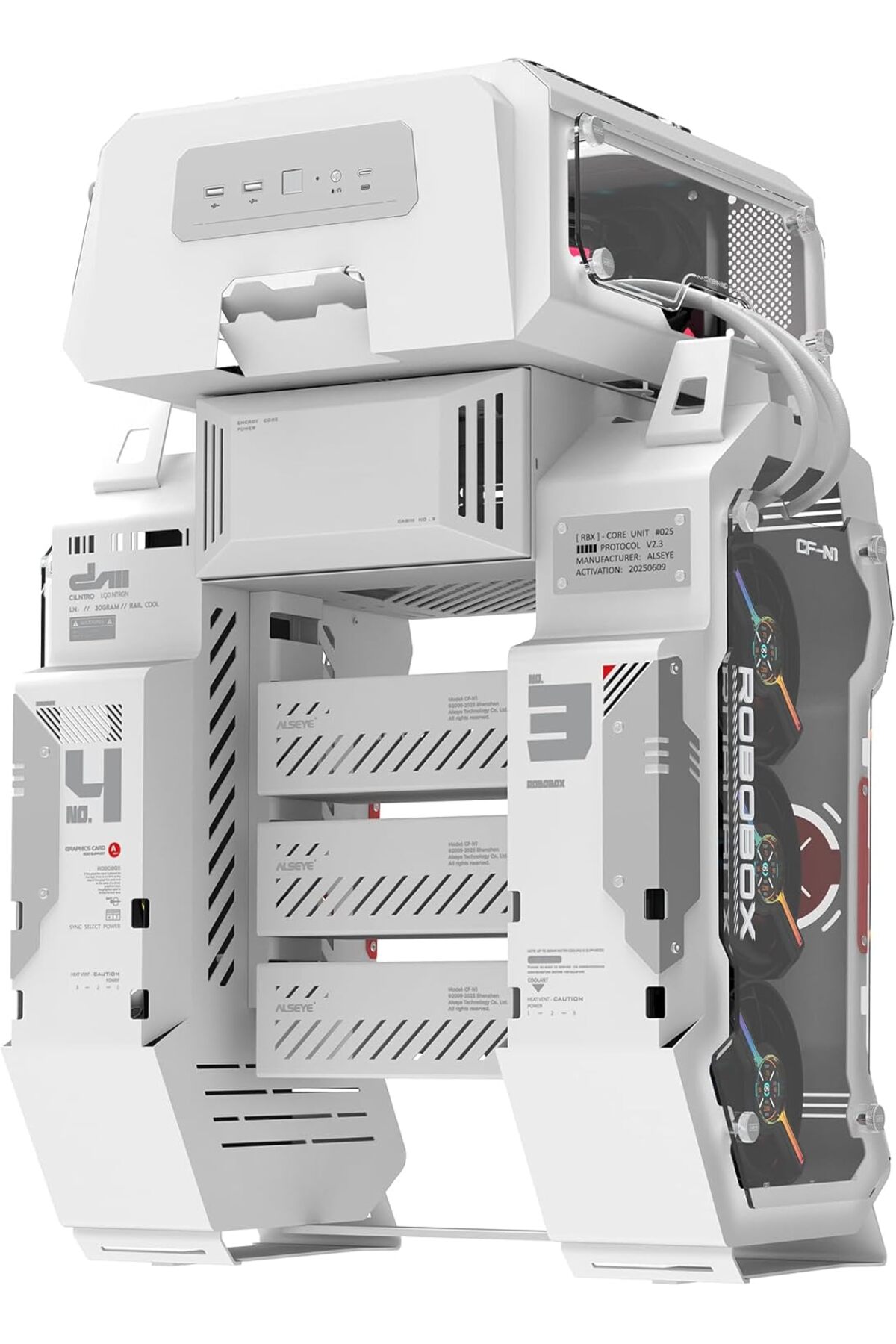 ALSEYE ROBOBOX Gaming PC Case - Dual 360mm Radiator Support, Acrylic Open Frame, Unique Space Theme, Micro ATX/ITX Mid Tower Computer Case