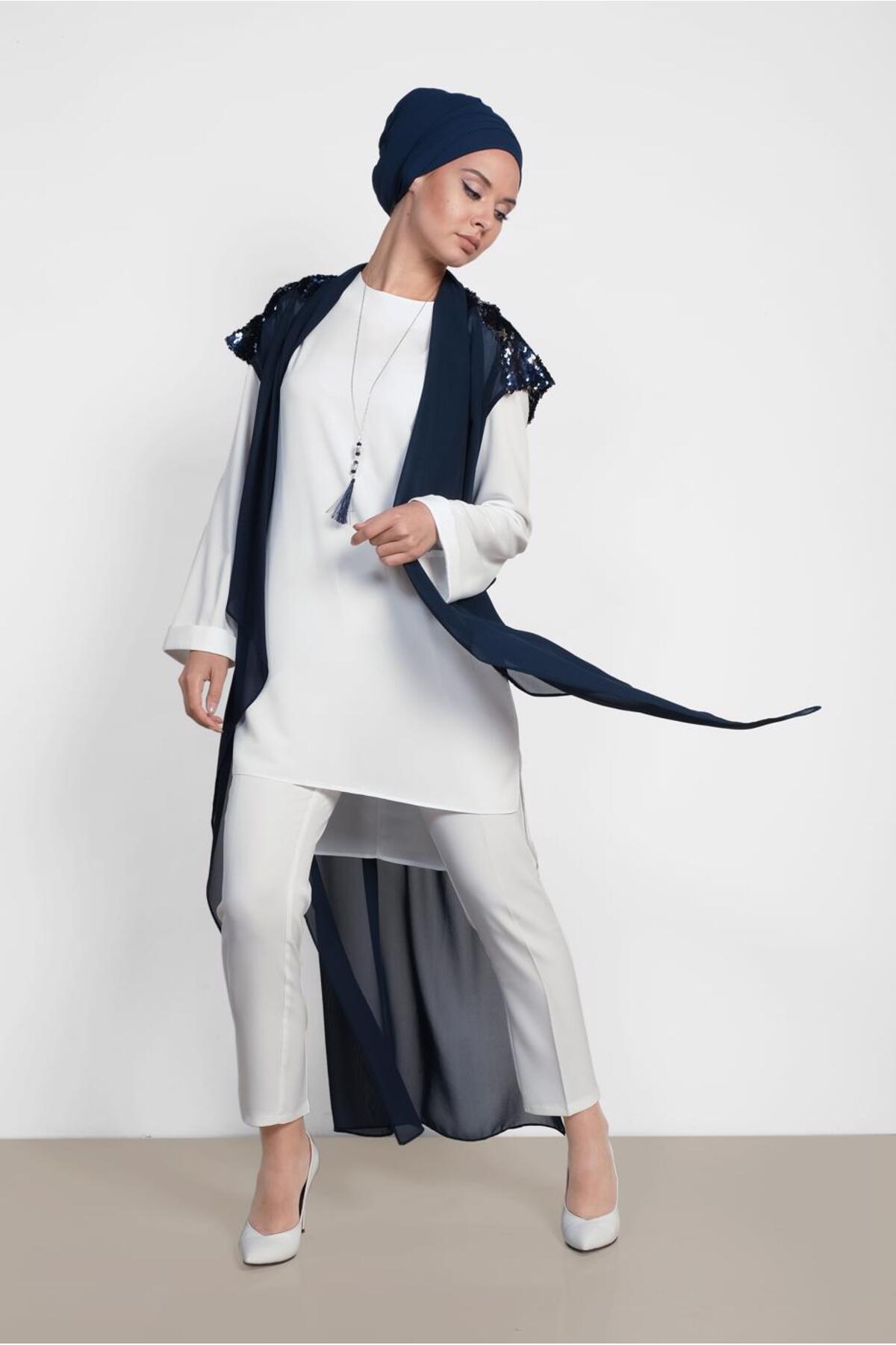 ميزات 4145 موديل تونيك مزدوج مزين بالترتر من Alvina