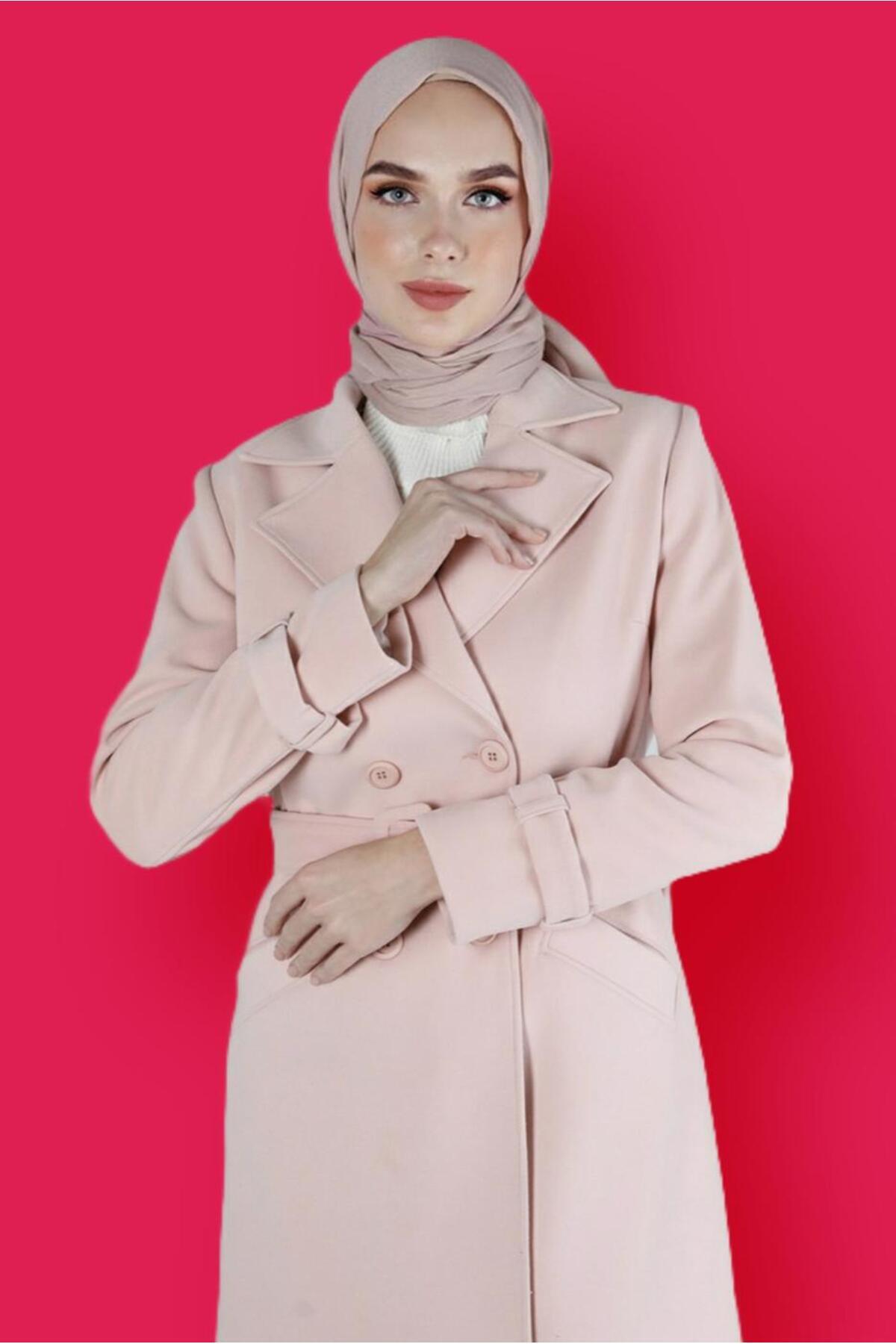 ميزات معطف بأزرار وحزام 90359 من Alvina