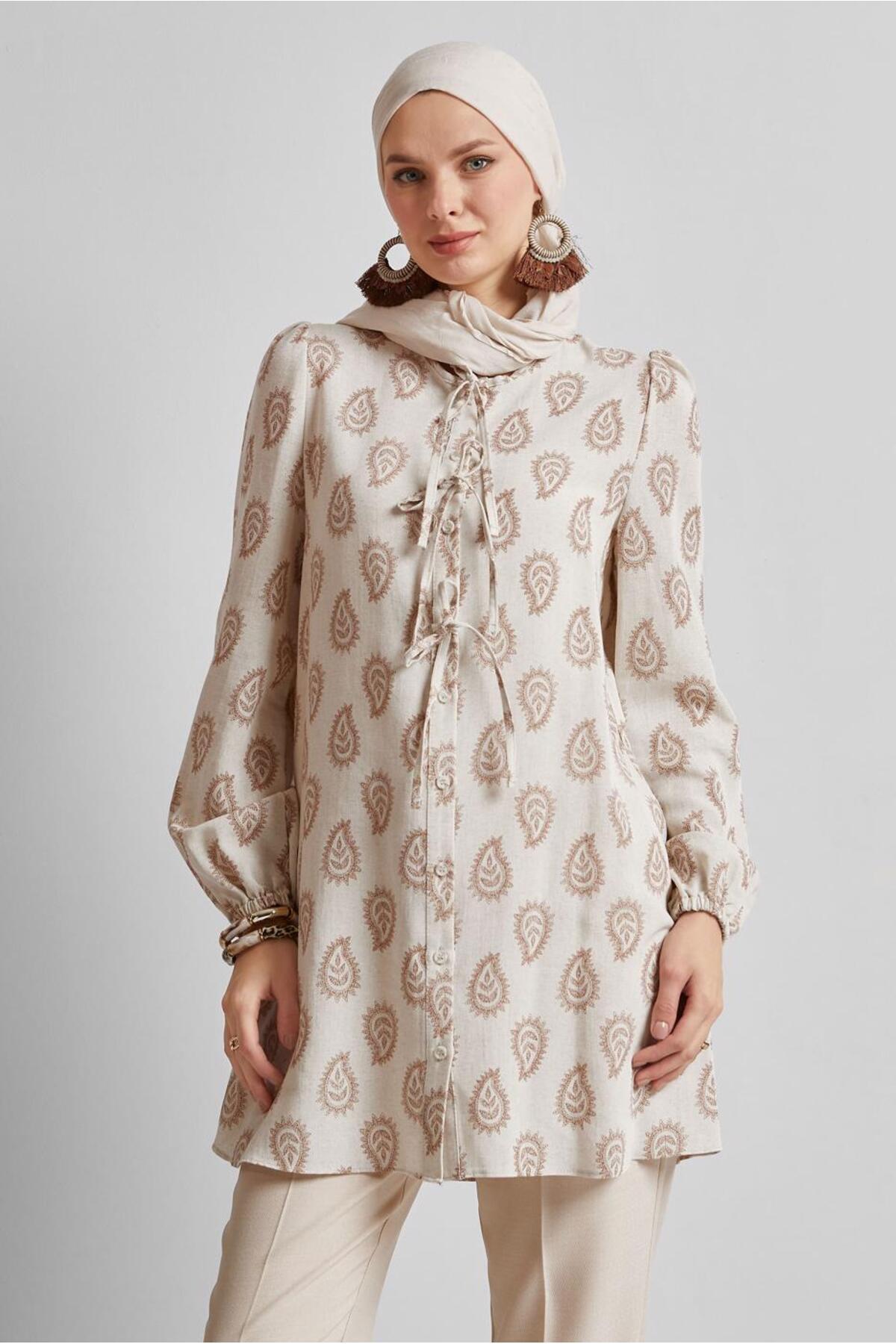 ميزات تونيك منقوش من الكتان 45590 من Alvina