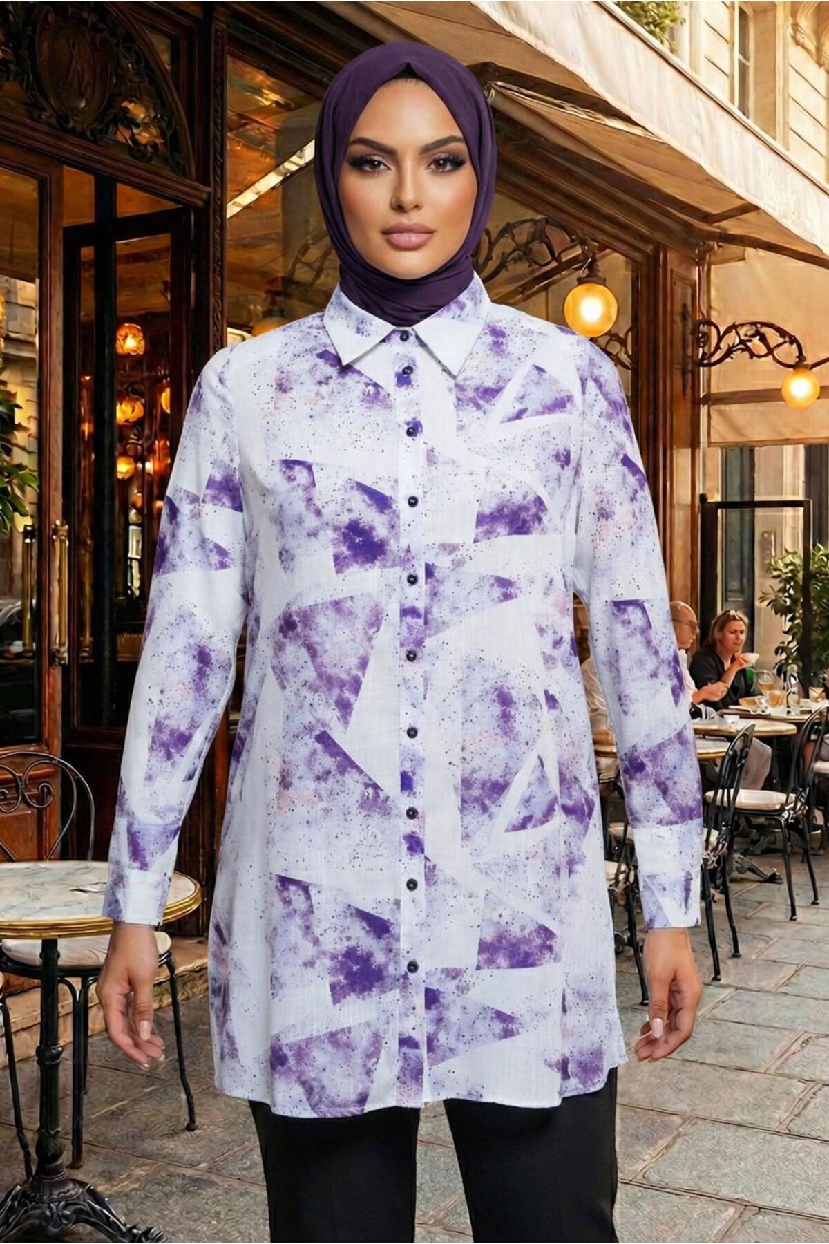 ميزات تونيك منقوش مقاس كبير 20512 من Alvina
