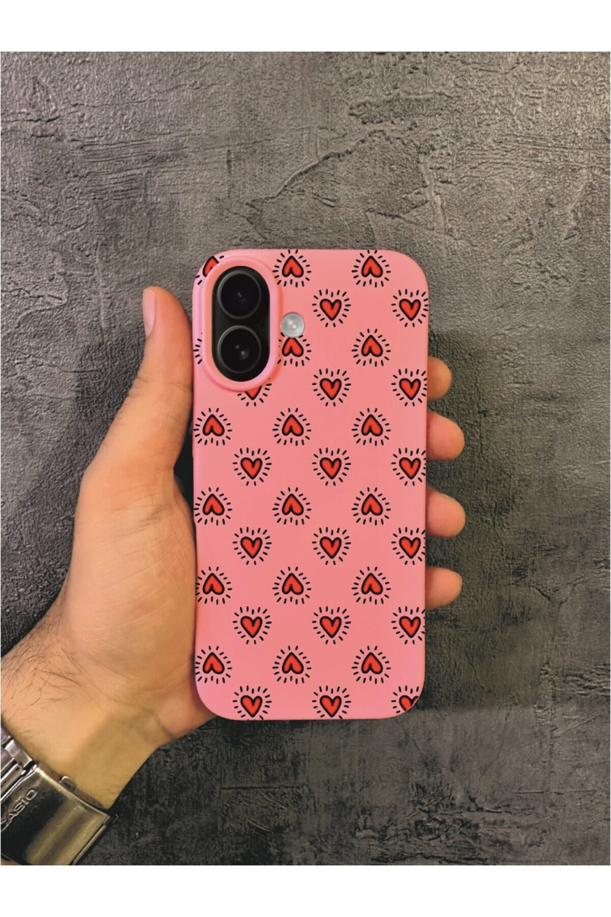 ALYACEPSTORE CASE حافظة آيفون 16 بلس المتوافقة ذات النمط القلبي الأحمر والوردي