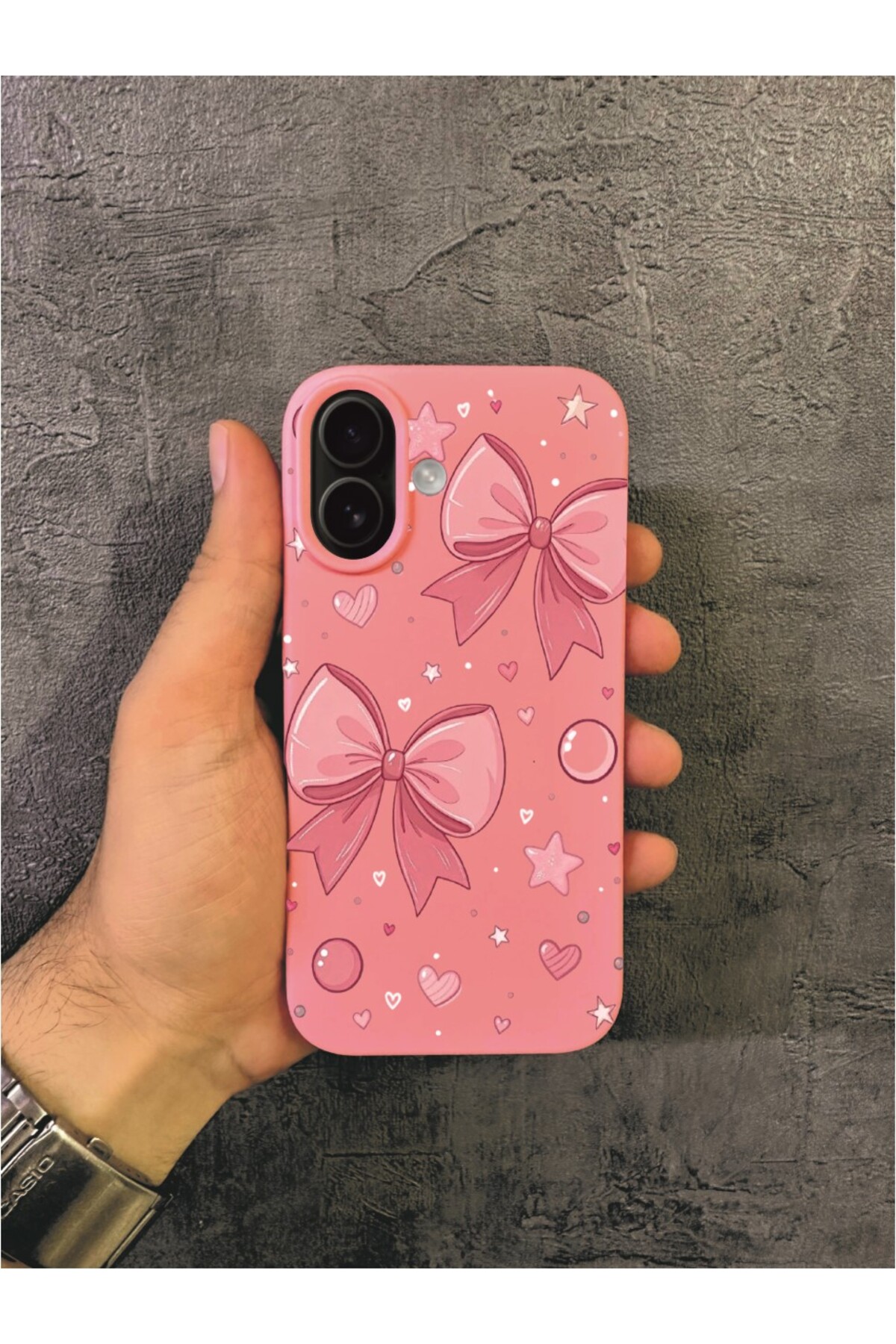 ميزات حافظة آيفون 16 بلس المتوافقة مع نمط الشريط المزخرف باللون الوردي من ALYACEPSTORE CASE