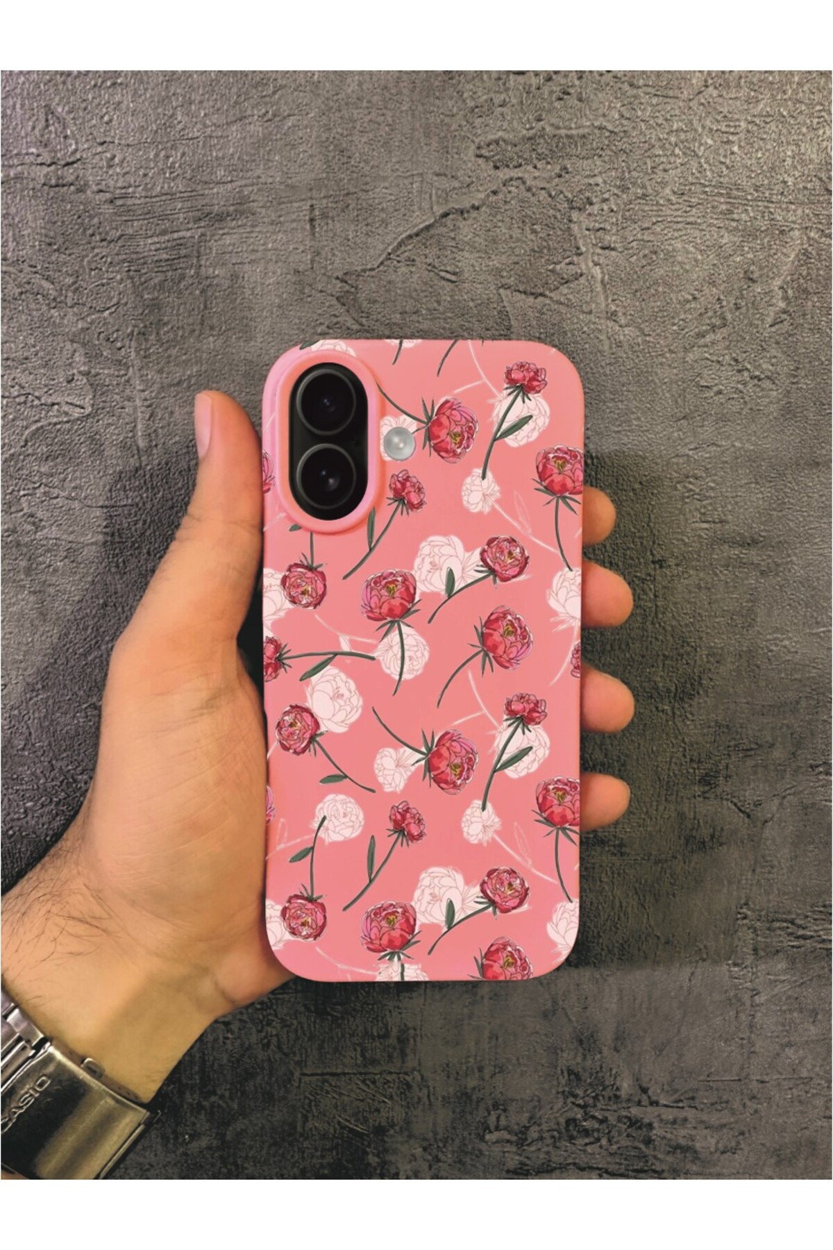 ميزات حافظة آيفون 16 بلس المتوافقة بنمط الورد والرسم التخطيطي باللون الوردي من ALYACEPSTORE CASE