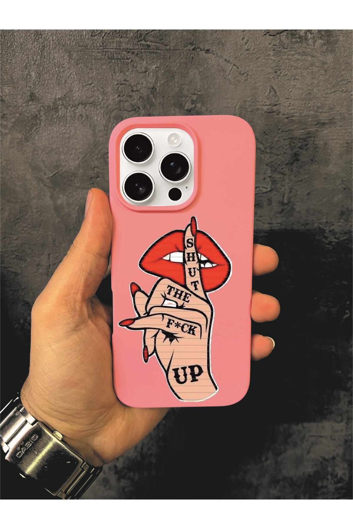 ميزات حافظة آيفون 16 برو المتوافقة مع نمط الغرافيتي باللون الوردي من ALYACEPSTORE CASE