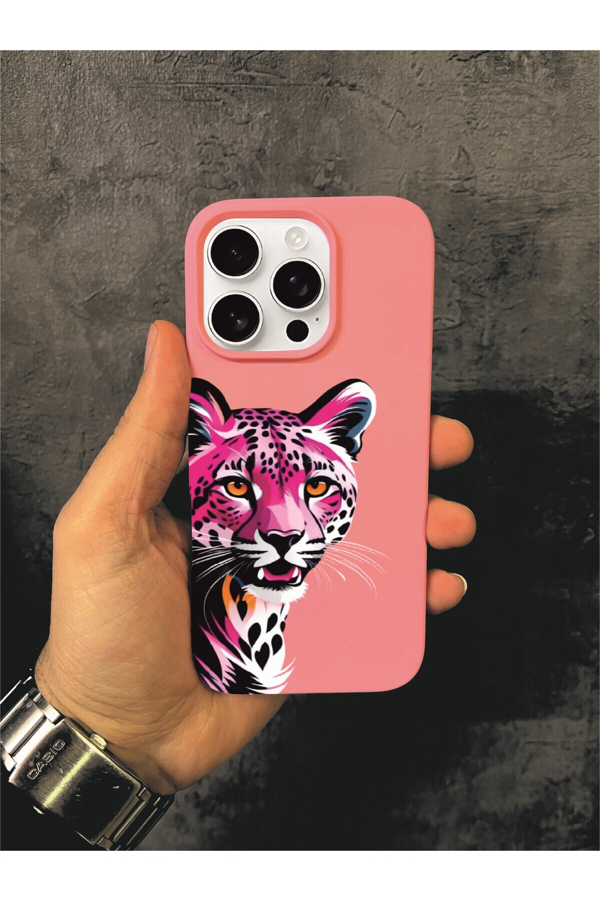 ميزات حافظة آيفون 16 برو المتوافقة بنمط الفهد باللون الوردي من ALYACEPSTORE CASE