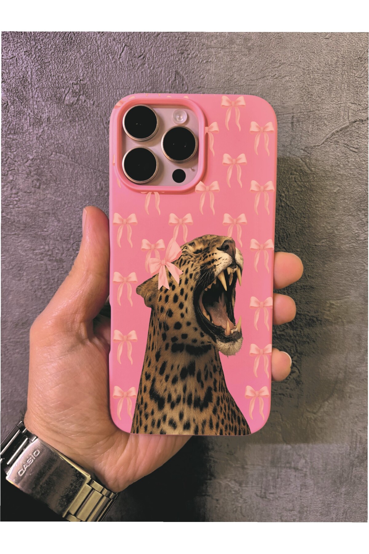 ميزات حافظة وردية بنمط الفهد متوافقة مع آيفون 16 برو ماكس من ALYACEPSTORE CASE