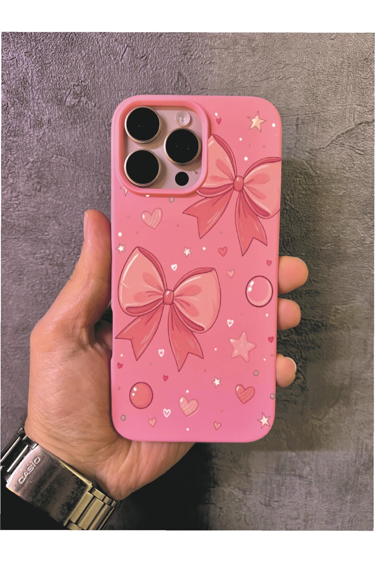 ميزات حافظة آيفون 16 برو ماكس متوافقة مع تصميم الشريط المزخرف باللون الوردي من ALYACEPSTORE CASE