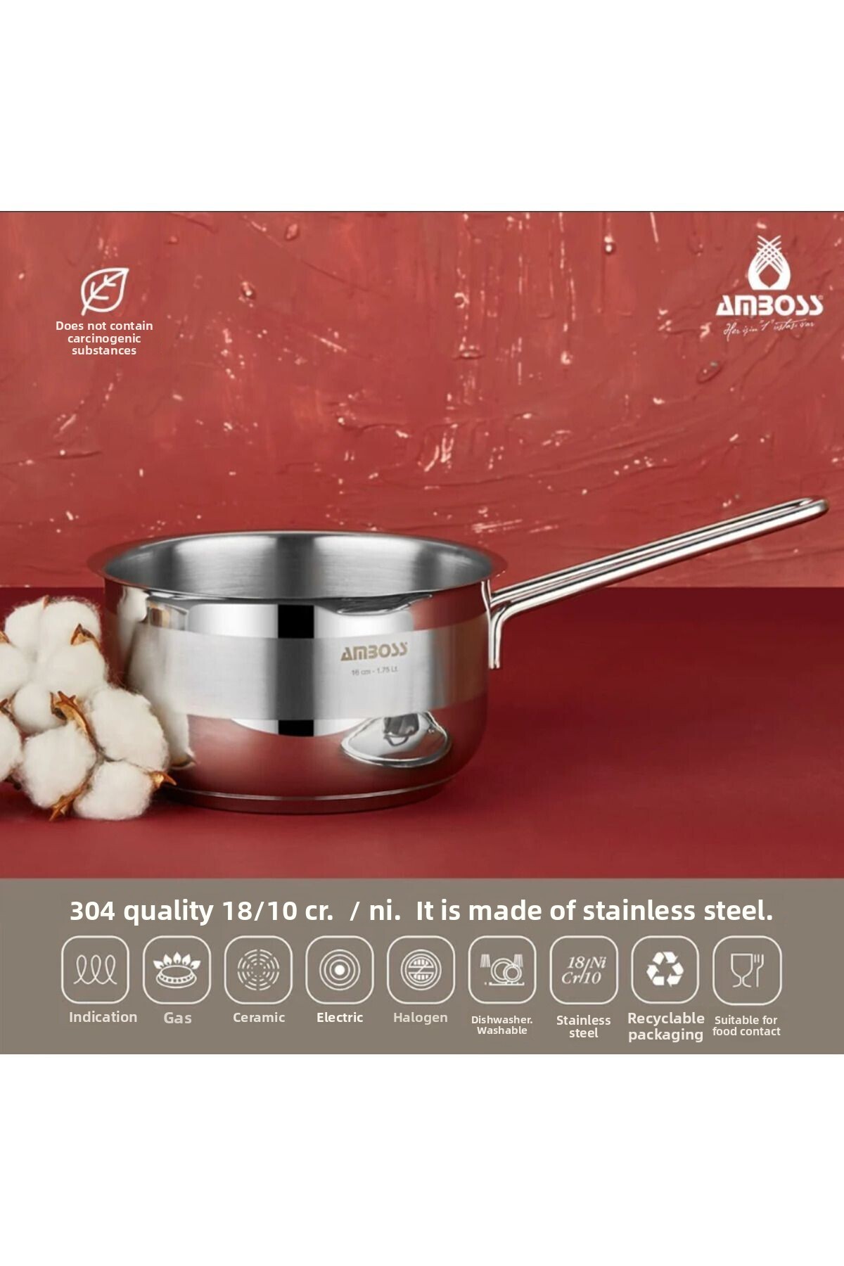 Amboss وعاء حليب 16*9 سم يعمل بالحث الحراري