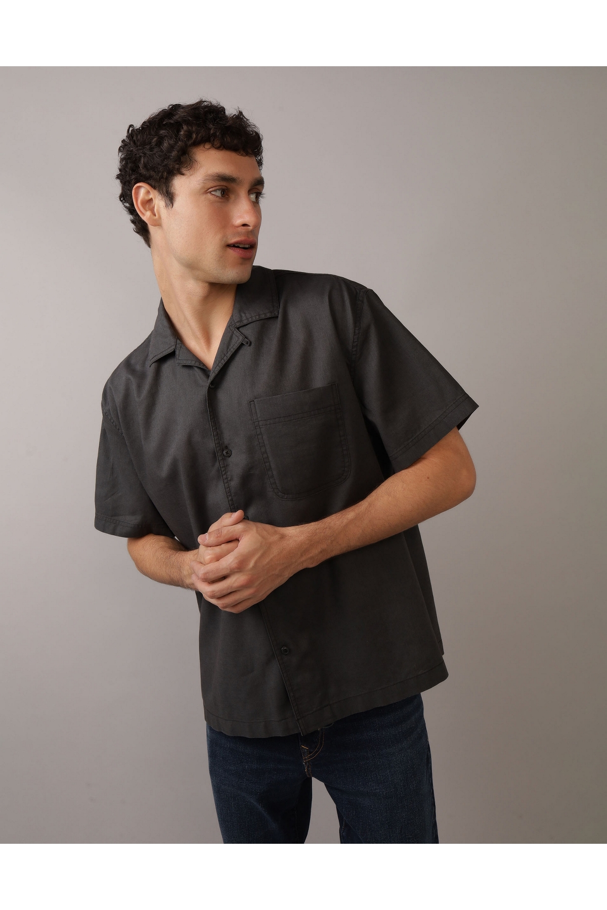 ميزات قميص AE المصنوع من مزيج الكتان بأزرار عند حوض السباحة من AMERICAN EAGLE