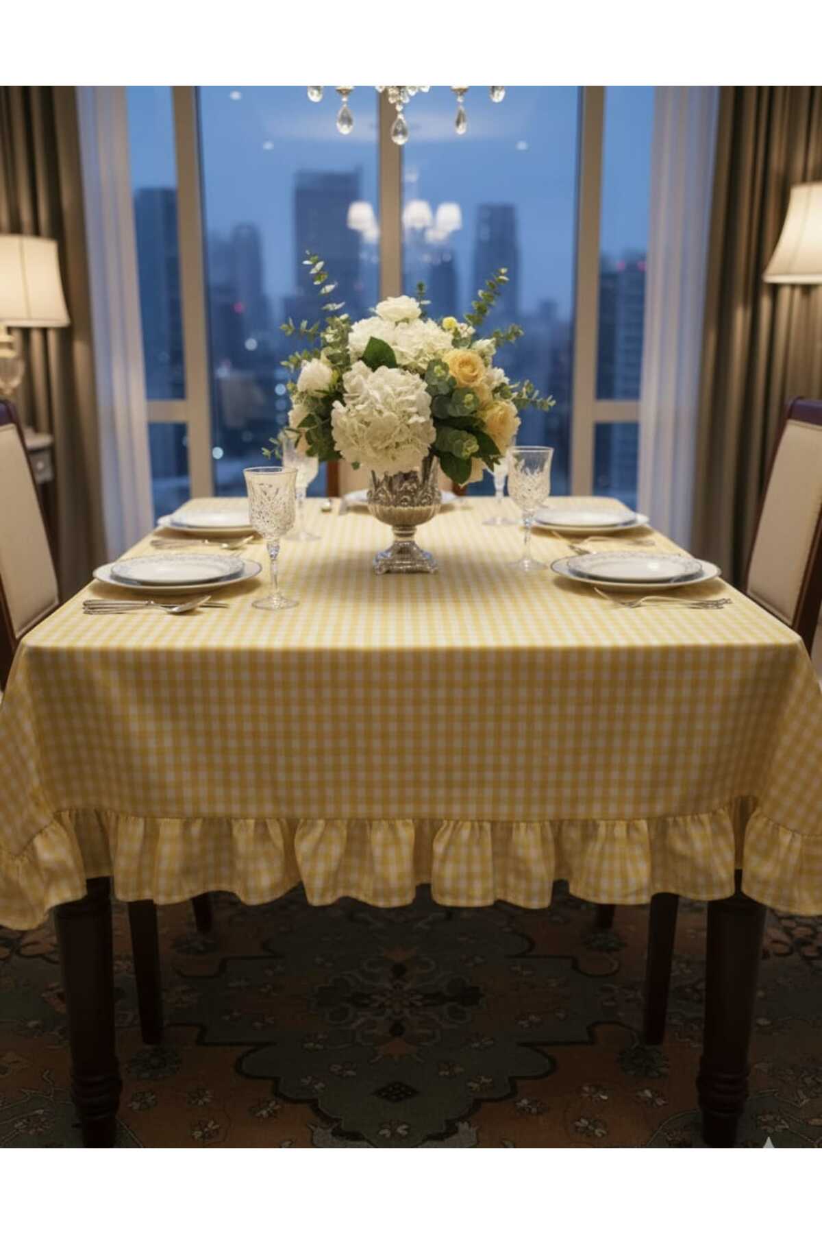 ميزات مفرش طاولة منقوش بتصميم كشكش من Angels' Collection