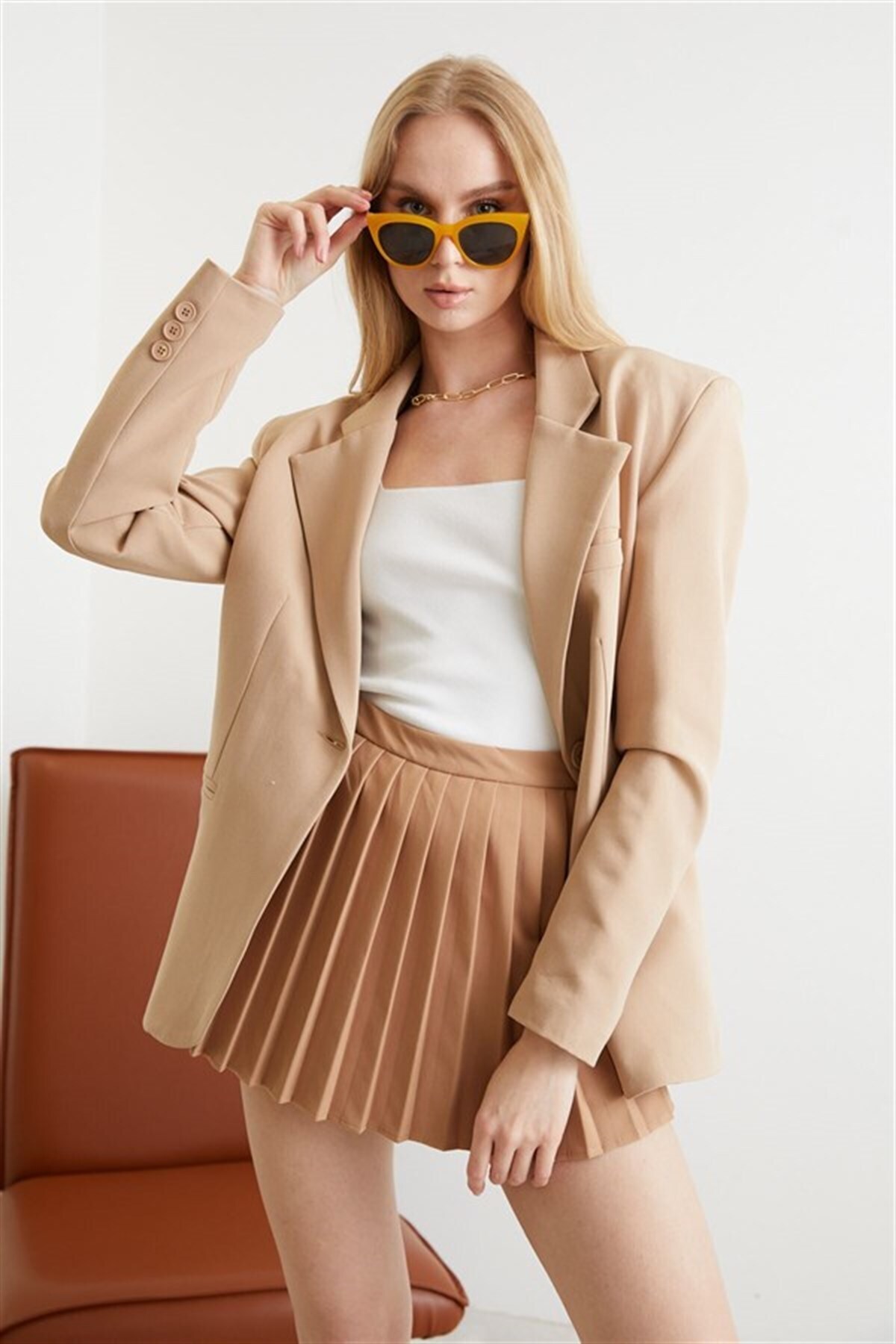 ميزات سترة بالازو باللون البيج من Antaress