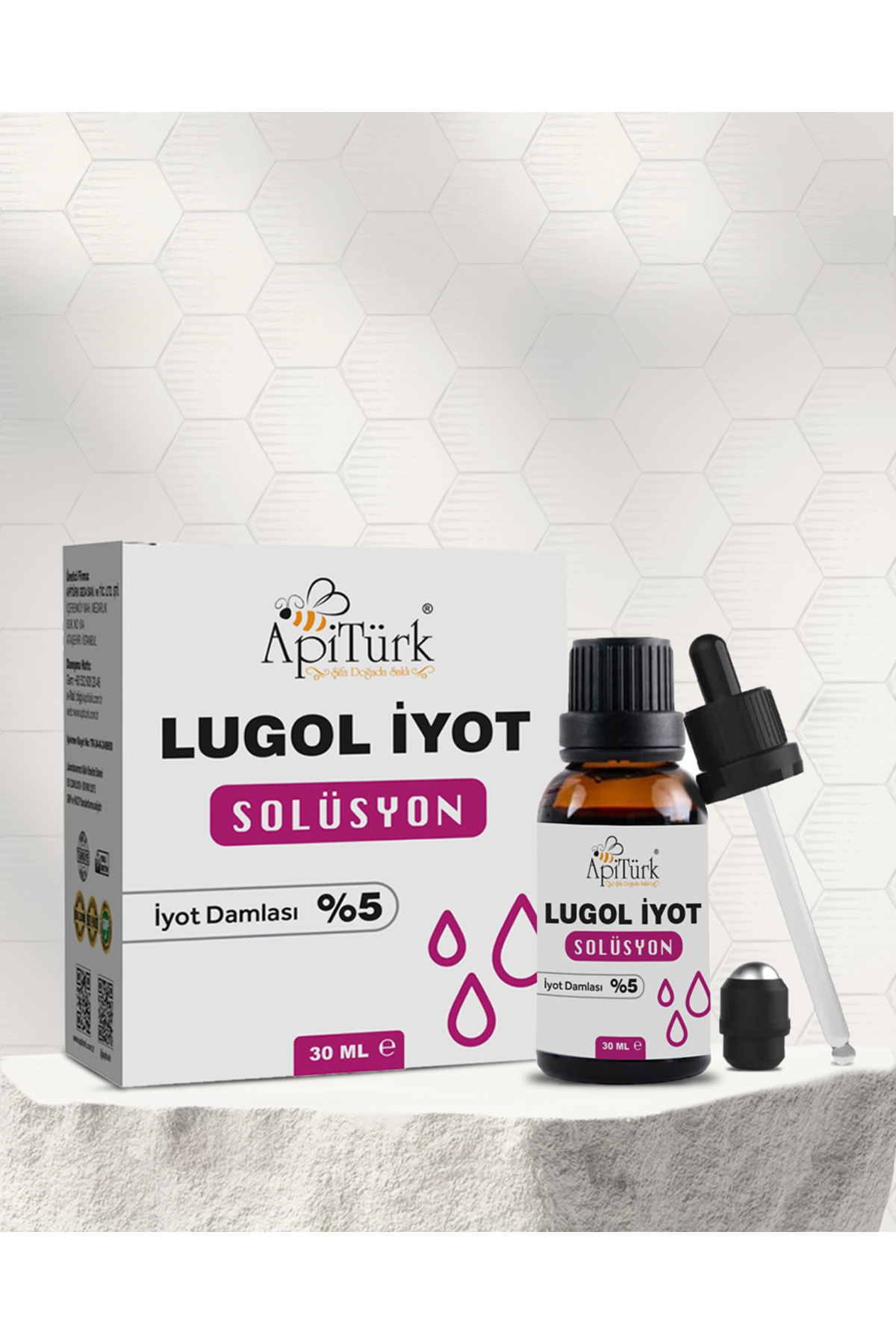 APİTÜRK محلول اليود لوجول 30 مل قطرات اليود 5%