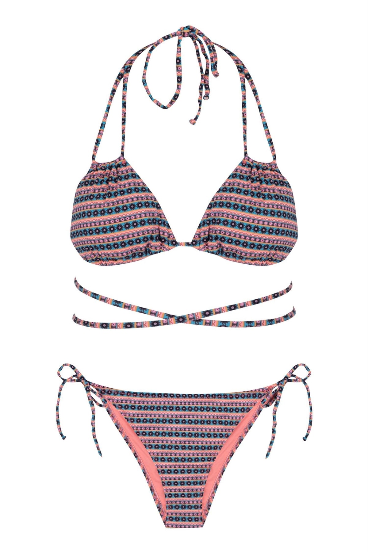 Aquella طقم بيكيني مثلث منقوش بتفاصيل ربطة عنق