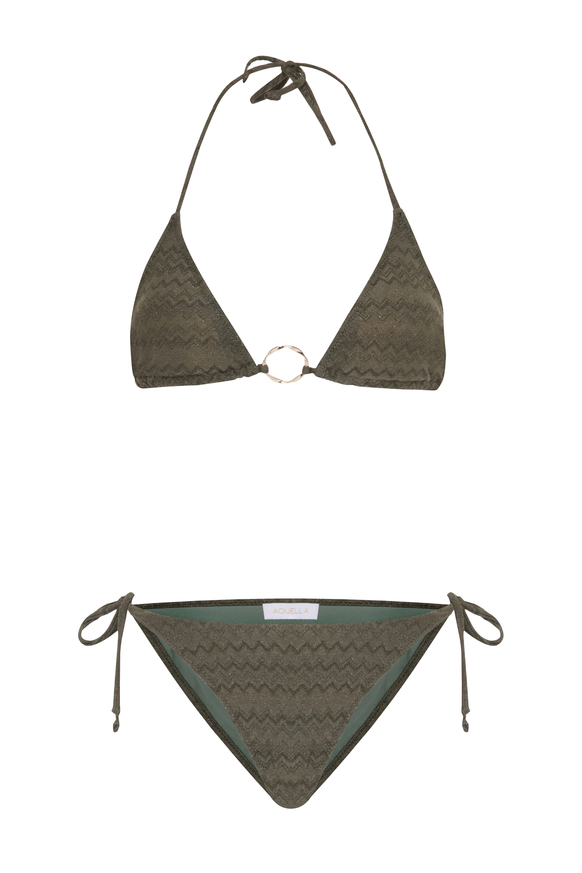 Aquella بدلة بيكيني مثلثة كاكي منقوشة متعرجة