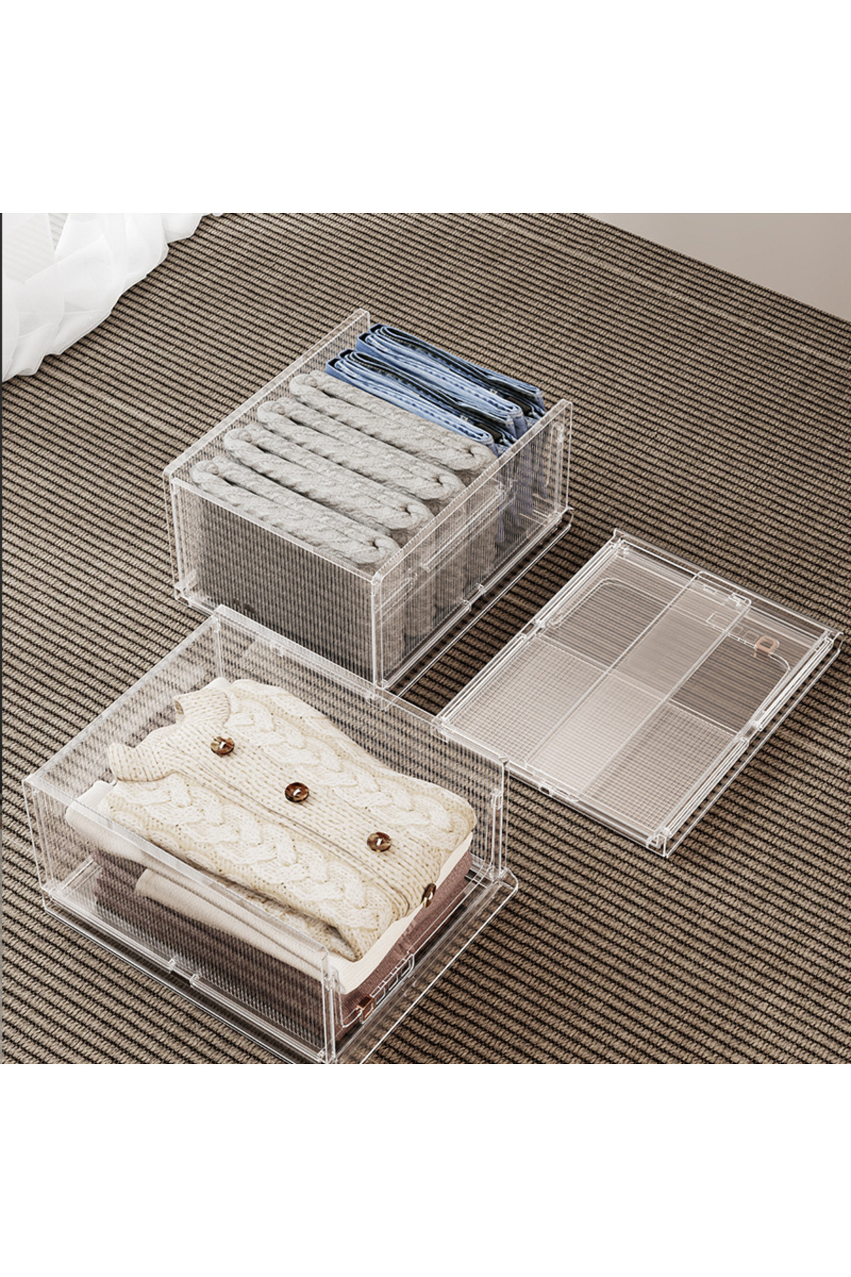 Arabest سلة تخزين بلاستيكية قابلة للتكديس، منظم خزانة ملابس وصندوق تخزين