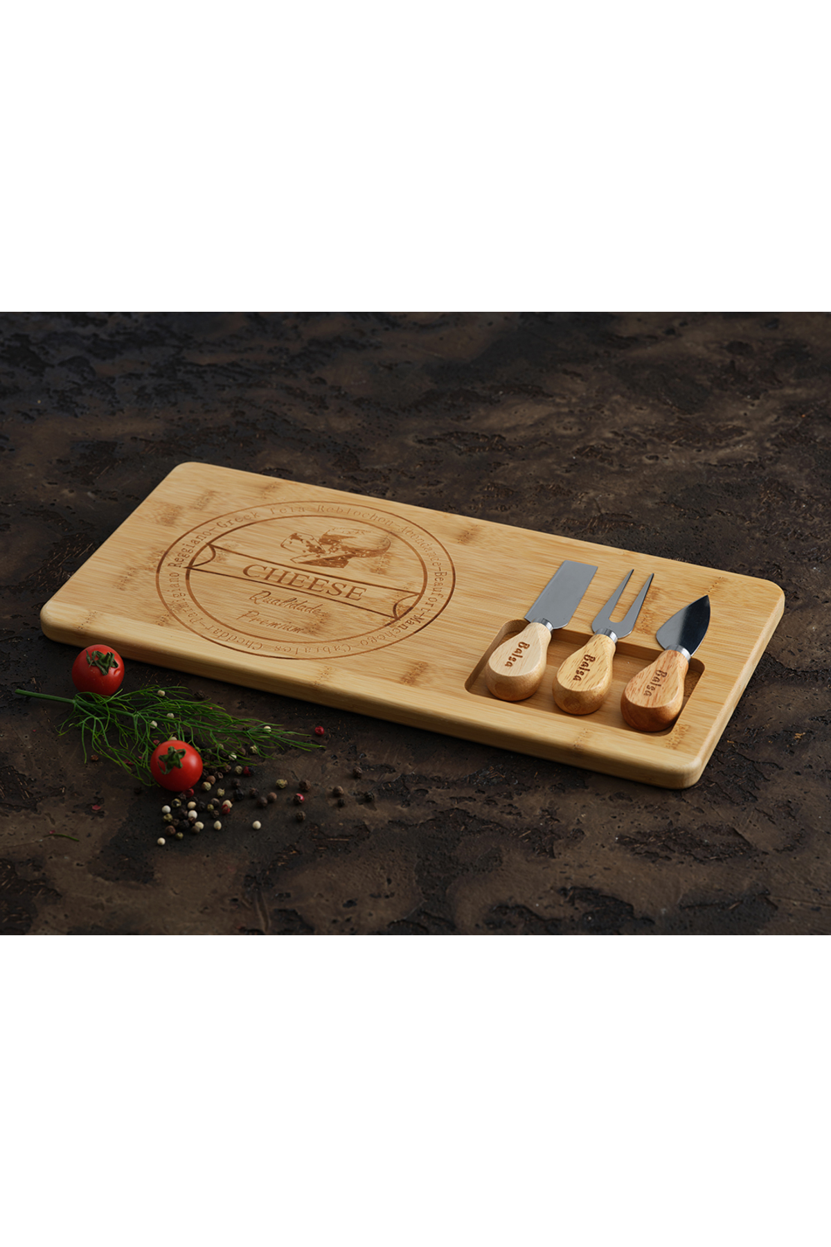 ميزات مجموعة عرض الجبن من الخيزران من Arbostone