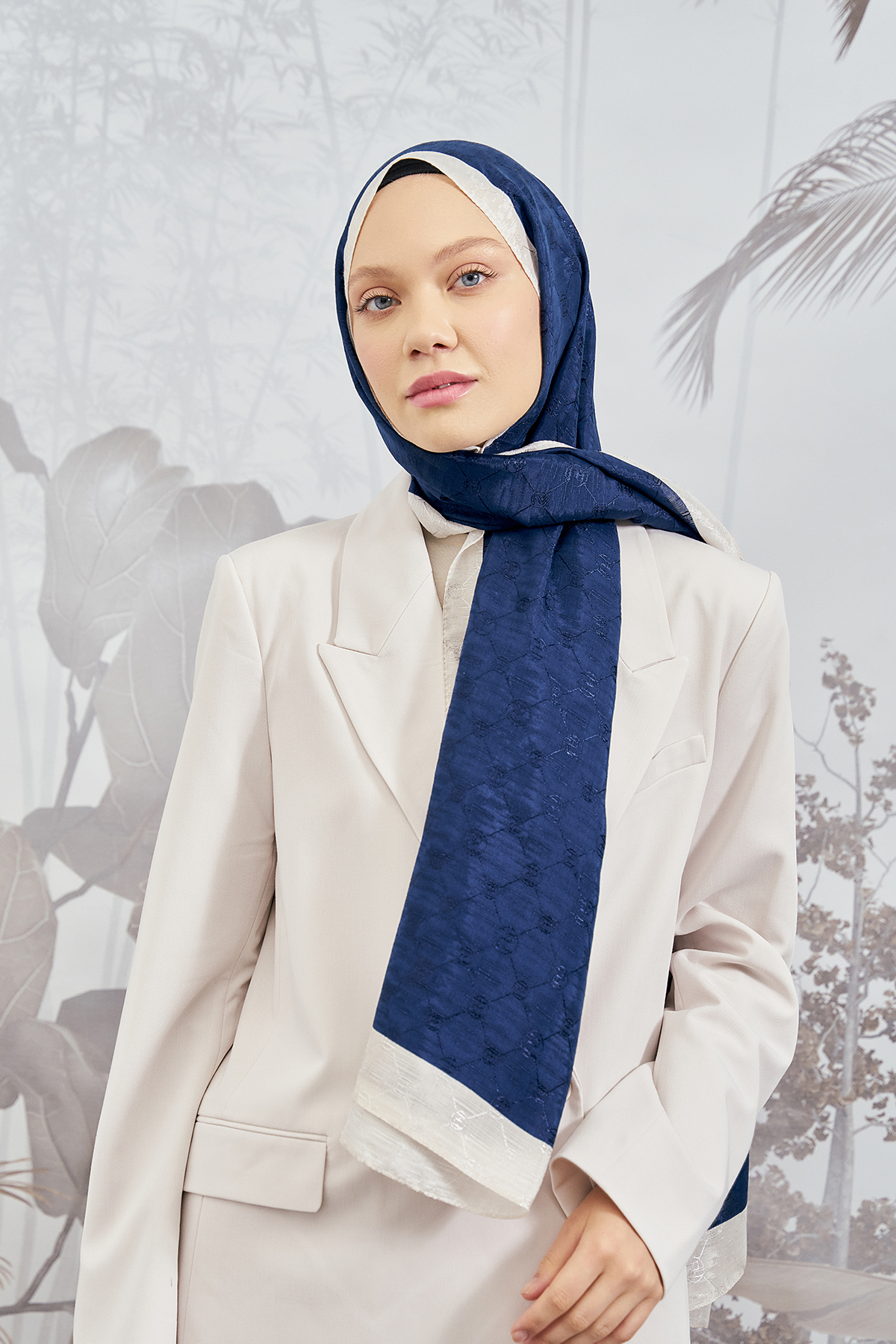 ميزات شال منقوش بنمط مونوغرام سلسلة 3042 - أزرق داكن من ARMANDA