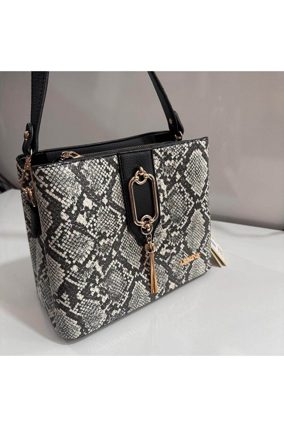 ميزات حقيبة بنمط الثعبان باللون الأسود AR36101 من Armine